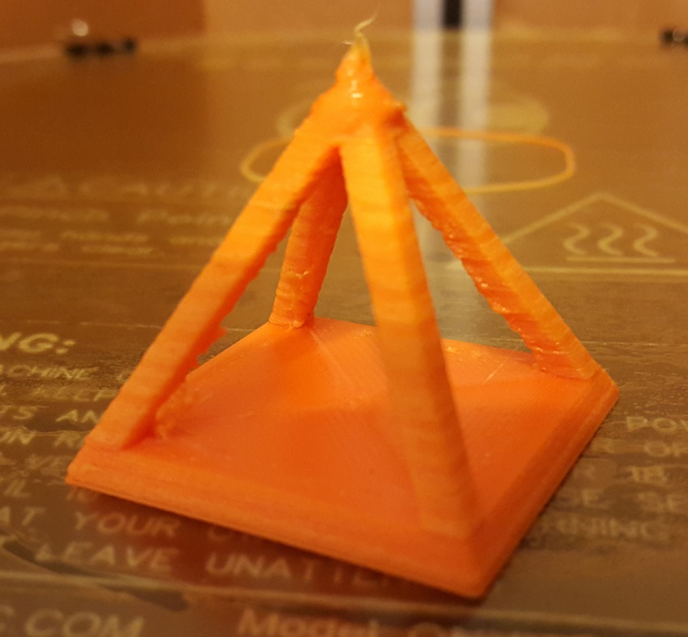 Here is the second attempt at the hollow pyramid. I reduced the retraction speed from the default 100mm/s to 40mm/s and kept the retraction length at 4mm. After the pyramid base was done, I turned on the fan at 30%. Still need some tweaking at the top which is still a glob of filament. first_layer ...