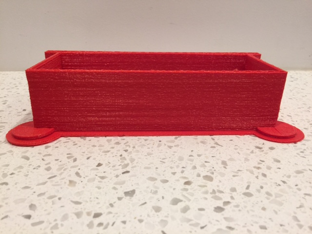 Because this is so long I am having second thoughts about printing it as is (with the ears down--obviously). That "end" wall is 3mm thick...the supports would be crazy, huh? But on the other side is a 13mm overhang on one side... Which side would YOU put on the bed to print this? Thanx! which.jpg