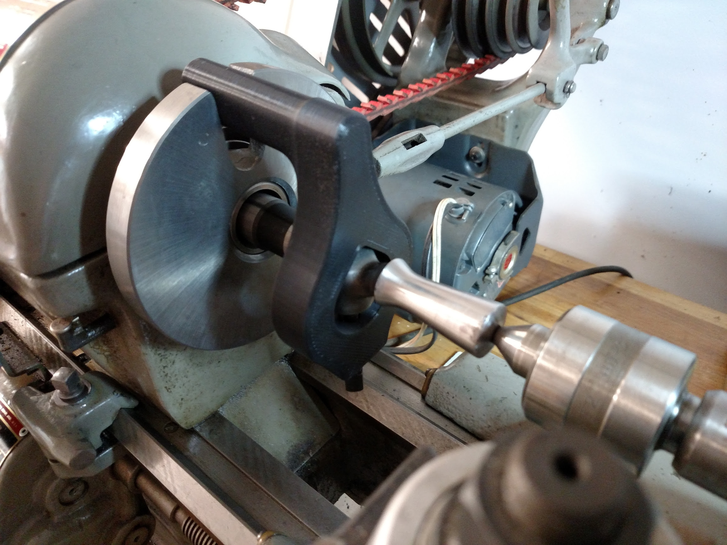 Couldn't find a drive dog with a long enough tang to engage the back plate. I'm only using it to polish a handle, so loads are not very large. Printed in PETG with 0.25 mm layers.