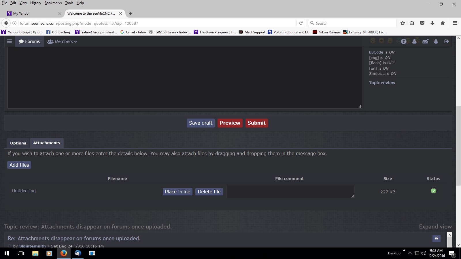 Oddly Geneb, if you look at my test post, only the first one is placed inline, and yet I see the second one. It works the same way when I post STL's, where they will be at the end of post as a clickable linkgeneb wrote:The attachment may appear in the list, but if you don't hit the "insert into post" button, it won't appear.