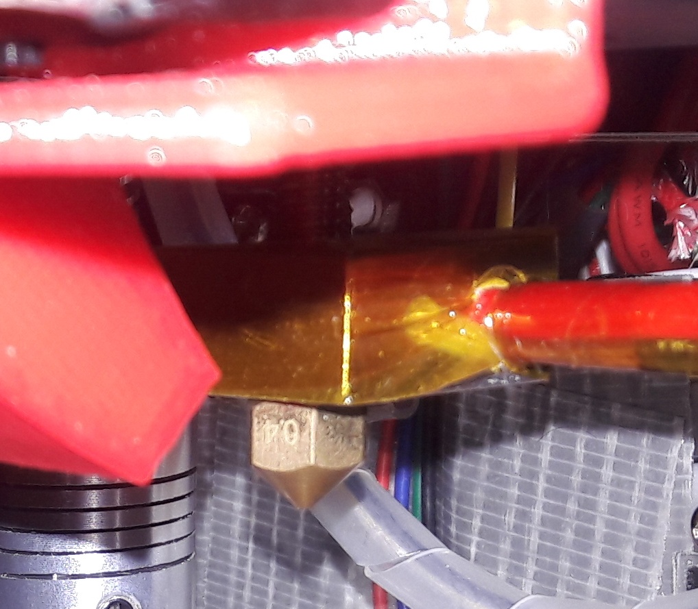 This is a pretty embarrassing question. I just built my first printer -- a generic Chinese Cartesian kit -- and have been running through basic calibration and checks before initial printing. In the process, I ran the hotend and bed temps up a bit (not to operating temps) just to test the heaters and thermistors. All seems OK. But just as I was getting ready to set up for a printing test run, I noticed that the hotend above the nozzle appears to be wrapped in some sort of clear plastic (even apparently over the hex nut I assume is used to remove the nozzle itself). Two photos attached. My first inclination was just to assume that this was shipping protection, cut it, and remove that plastic entirely -- but then I aborted that out of concern that there might be some operational reason for that to be there of which I'm unaware. While it survived my minor heating tests I doubt it would survive at full operating temperature. So, should I remove it? Sorry to be asking what must be such a basic question, but I've been burned before (no pun intended) by making assumptions during my engineering career. Thanks very much!
