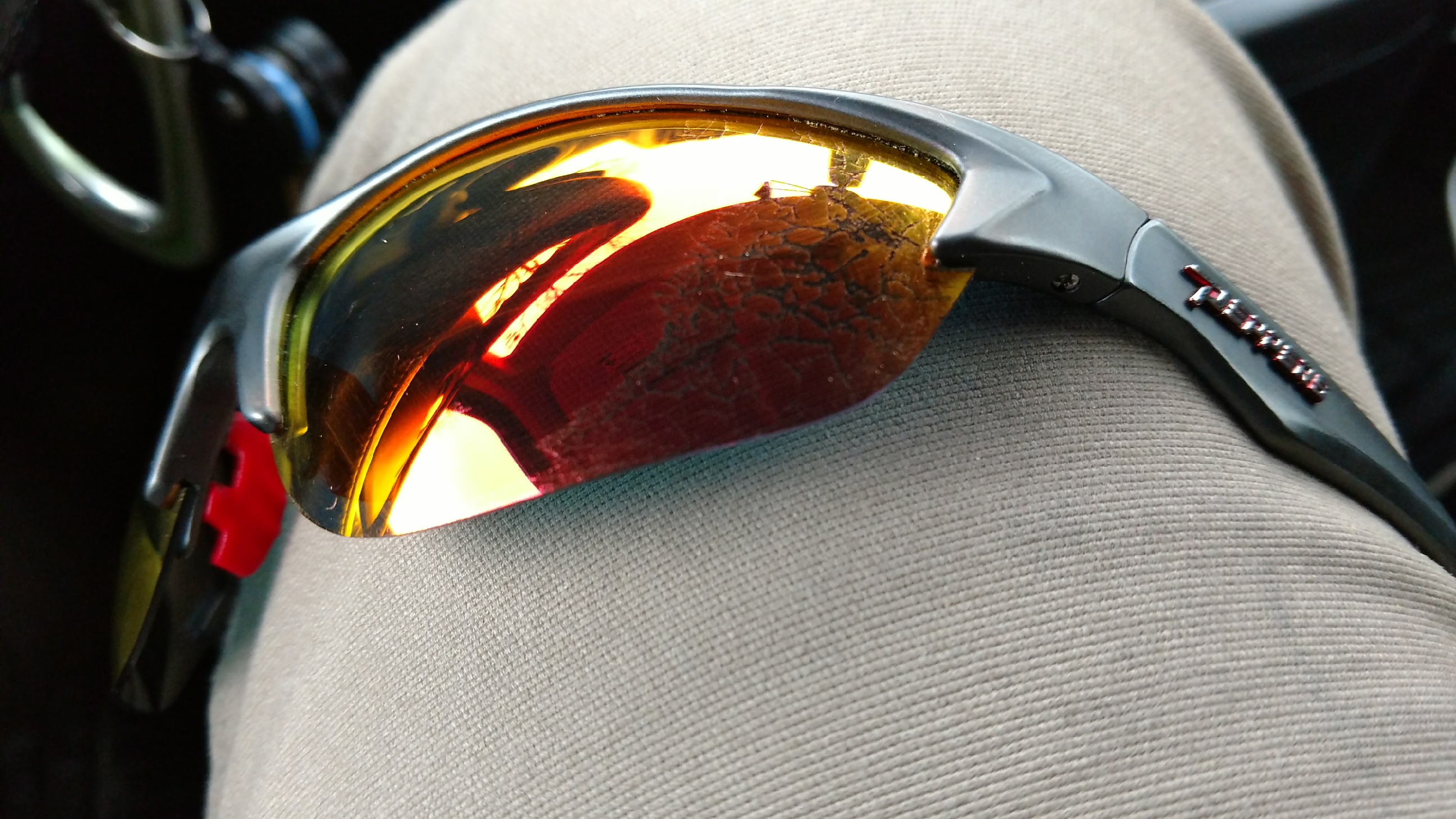 Some coolant isn't nice to sunglasses either. Walked through a machine shop to work on a computer and this happened.