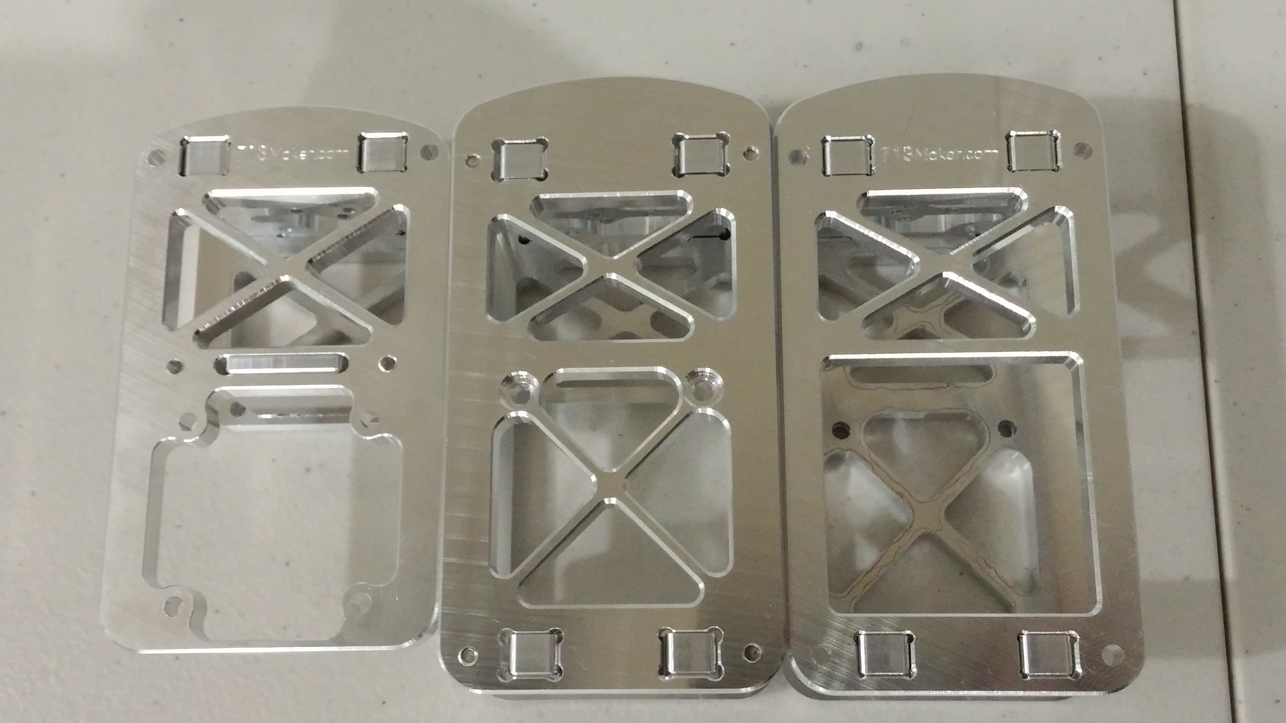 So the first batch of stock came in the other day and we just got our newest CNC mill making some aluminum chips. So.. I should have more on pricing soon and this week the plan Is to try and mill a set out to take by the anodizer and see what sort of pricing the kits will need for an anodized finish. Plan is to simply direcrtly pass the anodize rice along on the kits not planning to make anything off that part since they are just down the way from us. We did a test run of our new finish that we feature on the V3 kits with our in house anodize and it is an amazing result! The finish has great depth to it and there is a great deal of "movement" to it as you walk by the parts. We are super excited and really looking forward to getting back the first run from the anodizer. Wish we could keep these in house for anodizing, but these parts are just too big for our current setup.