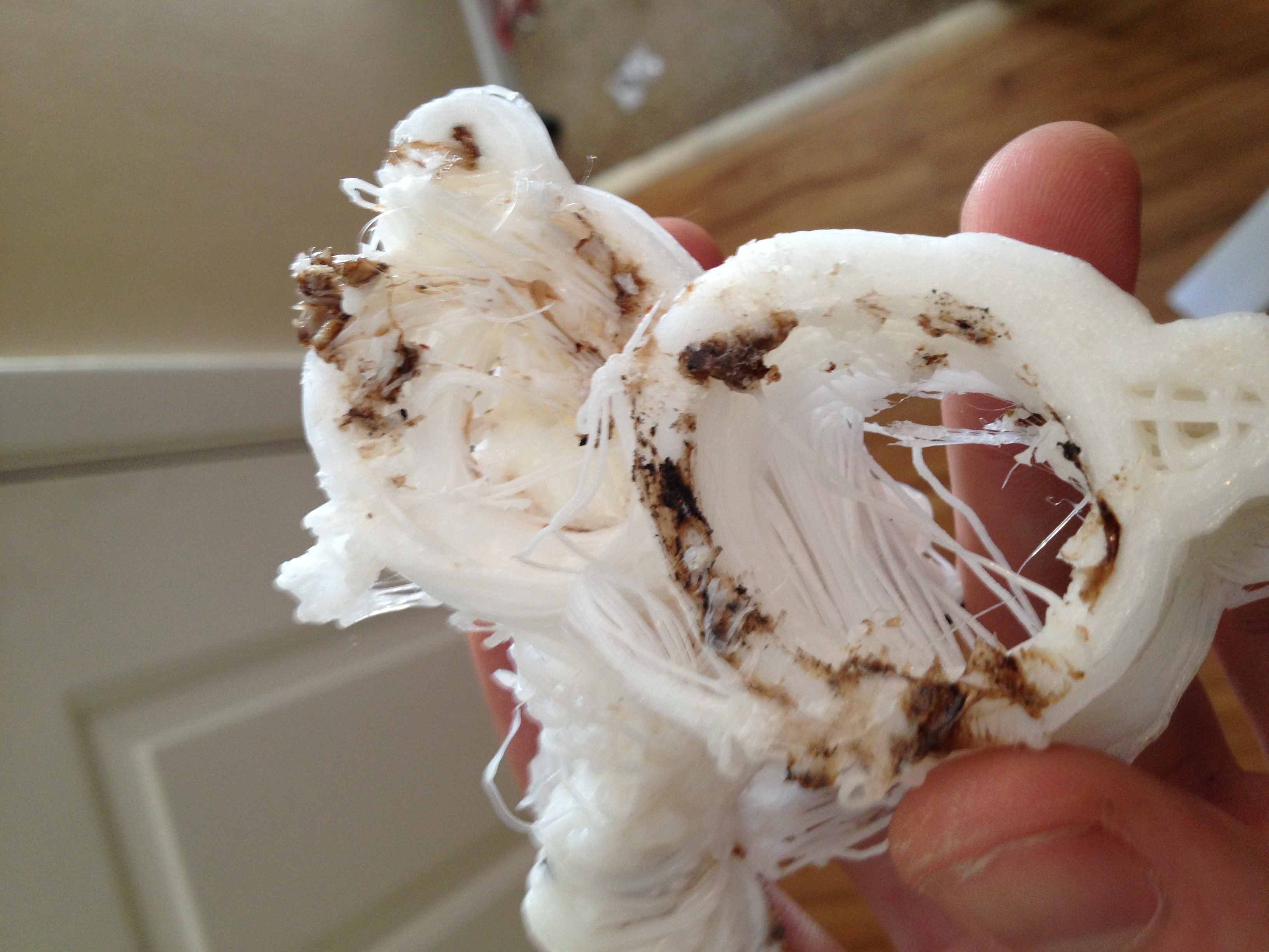 It may be melting PEEK, does it smell like burnt rootbeer? What temperature did you use?