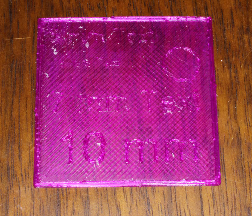I am using KISS, prime 10, suck 10, wipe 5, 190 temp, 55mm/s, min jump 1.5, trigger 5mm, Cooling fan is on after first layer, bed temp is 60. I've attached the stl file as well. I appreciate you taking a look. I ran another print this morning with fairly large text and it came out ok. The preview in repetier looks a little better than the final result, I didn't expect the 3mm or 5mm to come out great but the 5mm at least looked like it would mostly print.