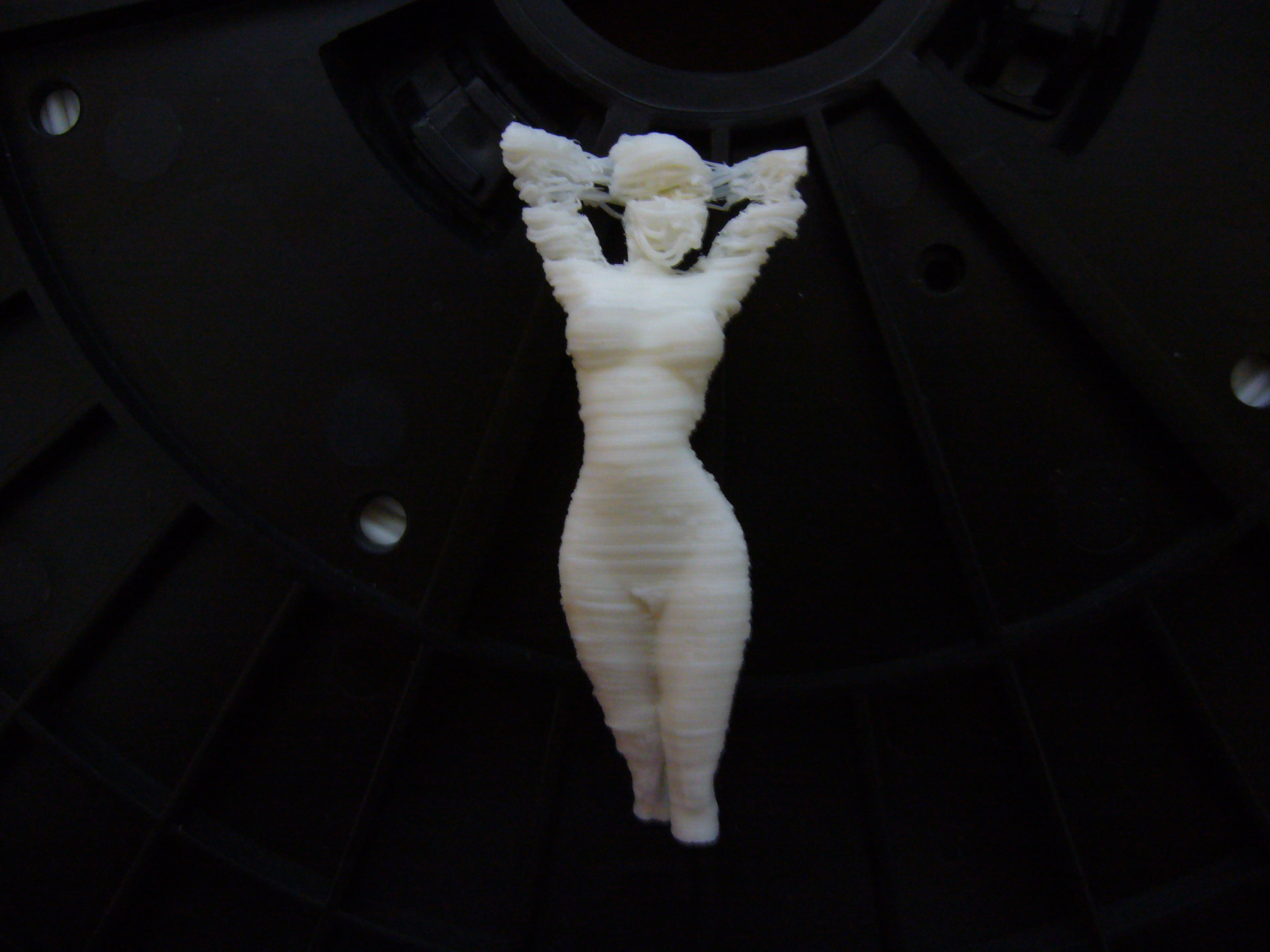 But I think you'll need support for the arms at the top, the current 7.2 Slic3r might generate it, it does generate support, but not always where you would expect. Otherwise you can use Skeinforge, which actually isn't as complicated as it first looks.