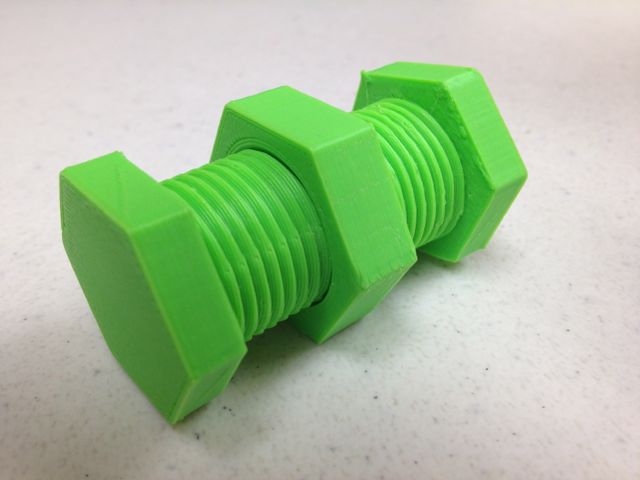 I've been carrying a screw-together sphere (http://www.thingiverse.com/thing:66824) in my pocket as a ready sample for the "What's this 3D printing thing about, anyway?" conversations that still happen. I think I will print this bolt and carry it for a while instead.