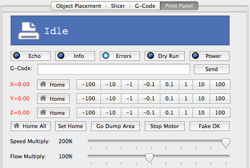 Ok, so I connected to repetier host last night and couldn't figure out how to move the extruder down in the software. Anyone who uses a Mac and Windows know if the Mac version is missing features? Or was I supposed to manually jig it down?