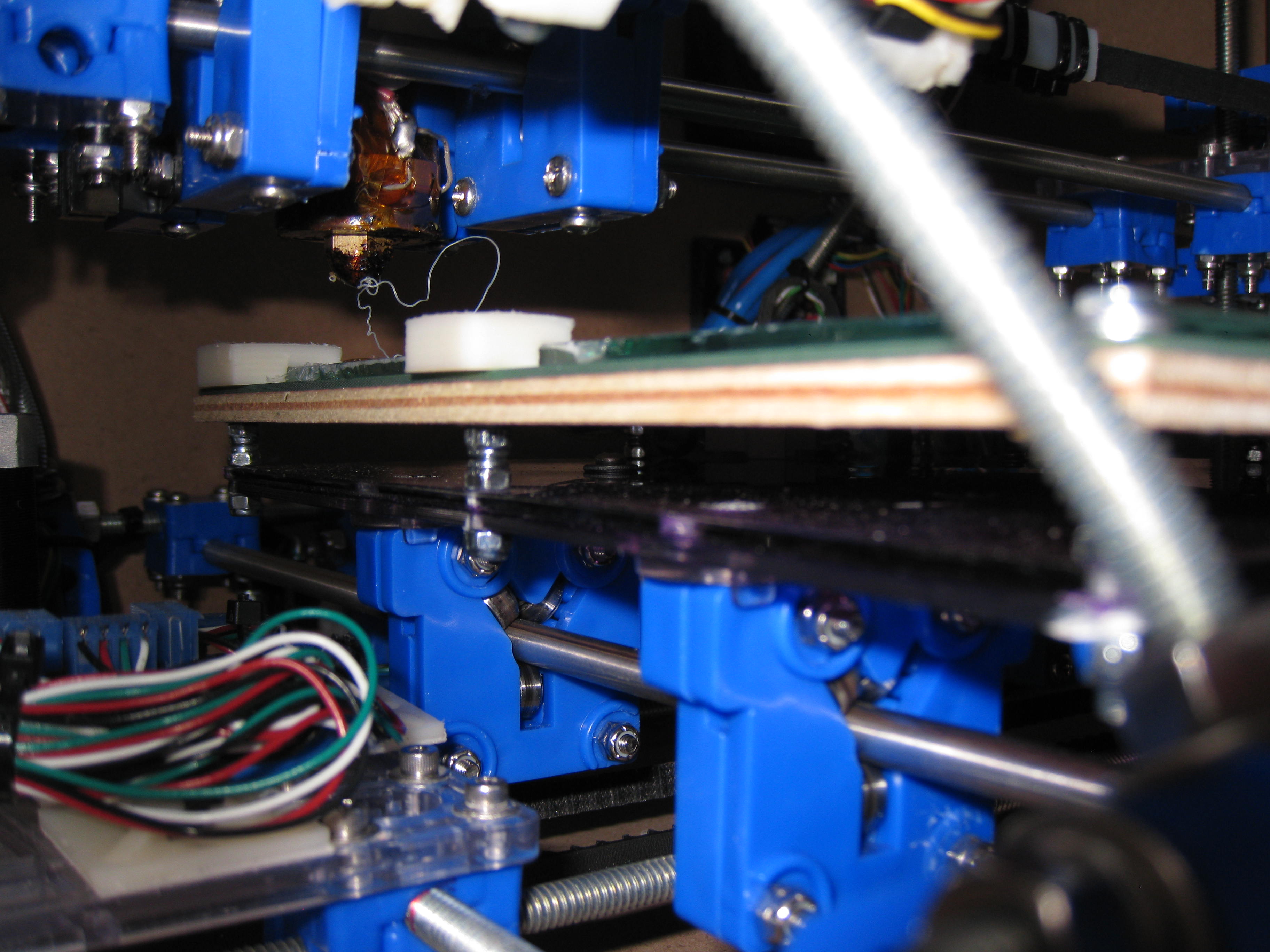 The bed was thickened to provide rigidity, I just glued another 1/8" plexi-glass plate to it, that's what the purple is, ABS/PVC cement.