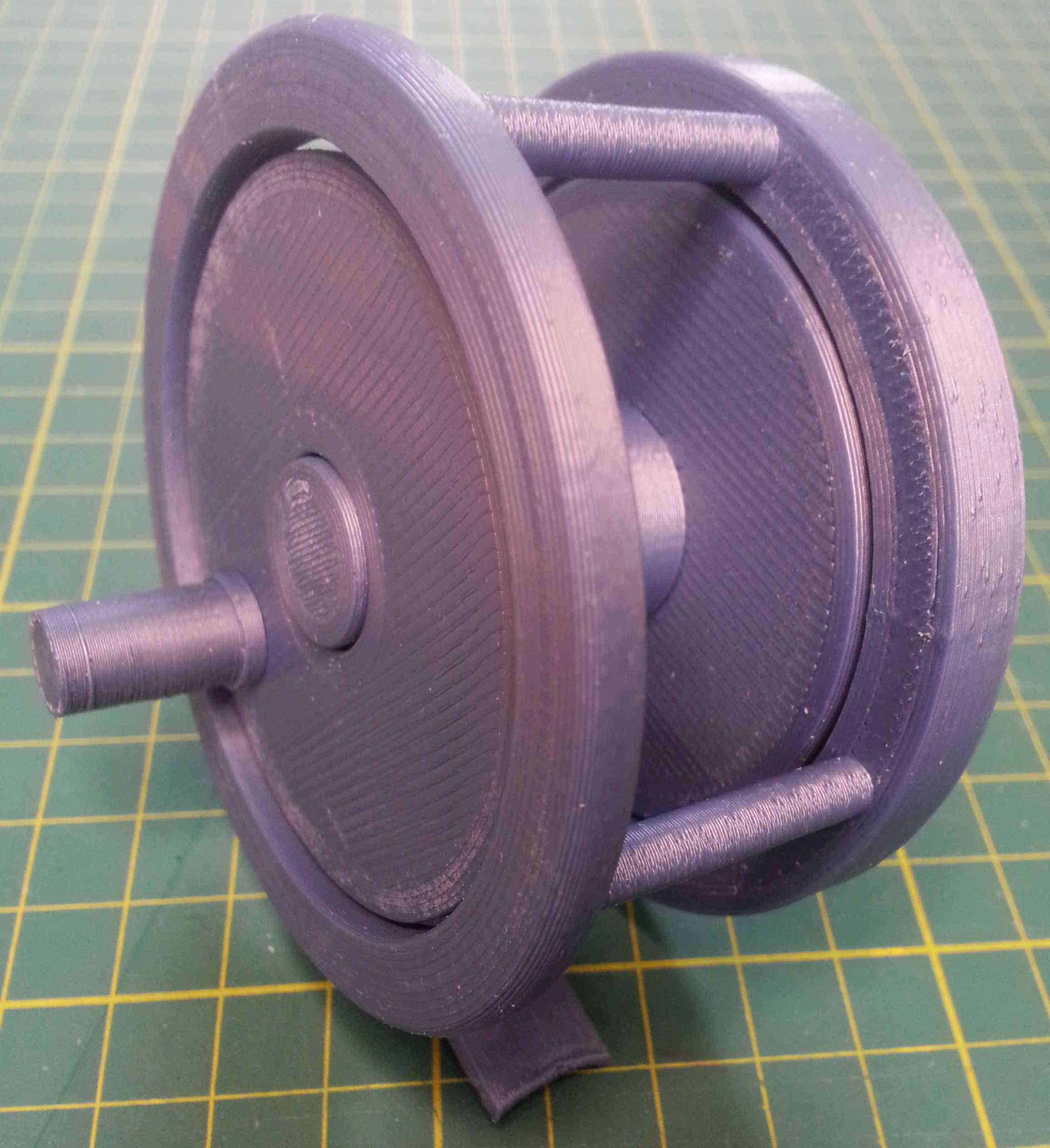 I've been working on this project for about a year. The goal: Print a working fly reel with no other hardware requirements. Originally, I was trying to not have to use glue either but now that I've made a number of prototypes, I think glue is necessary to get the strength needed and it isn't that big of a hassle. Here are some photos of the three part frame and foot assembly