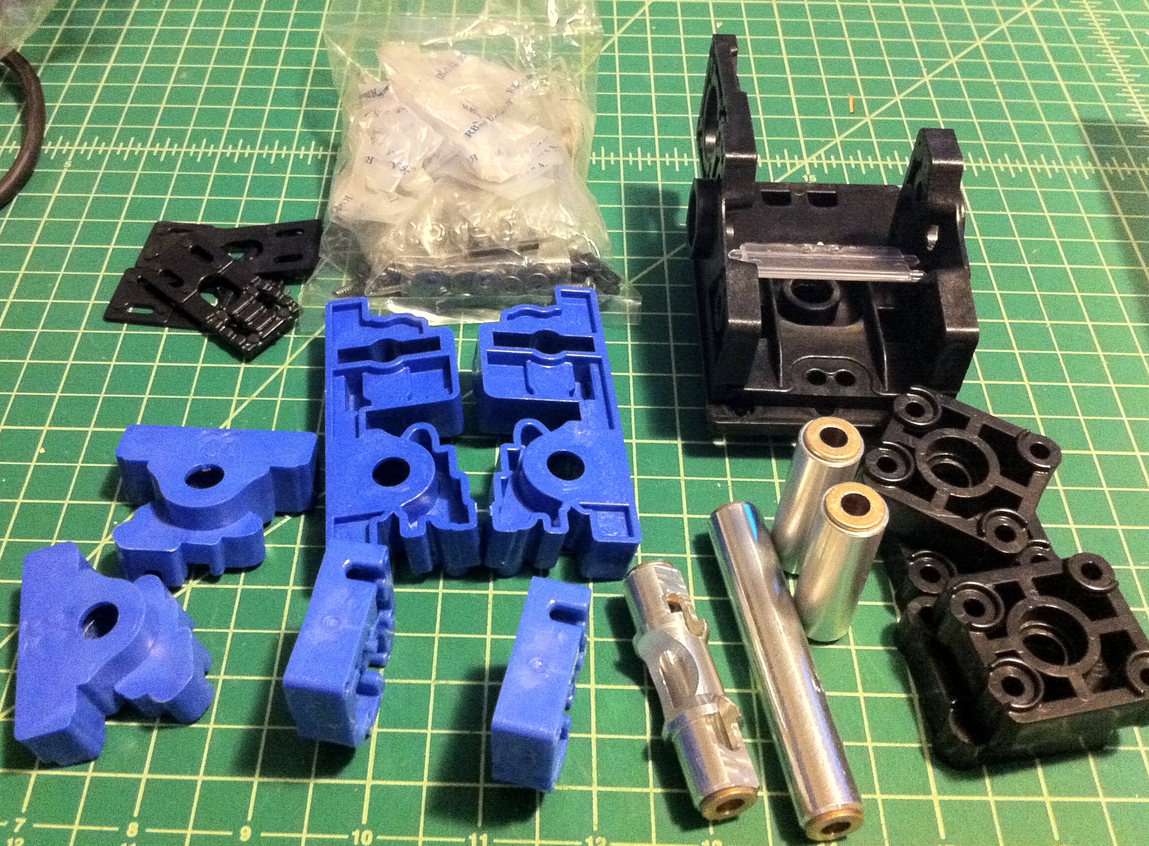 Here are a couple photos of the items I received today. The bag is full of bolts, nuts, bearings, etc.
