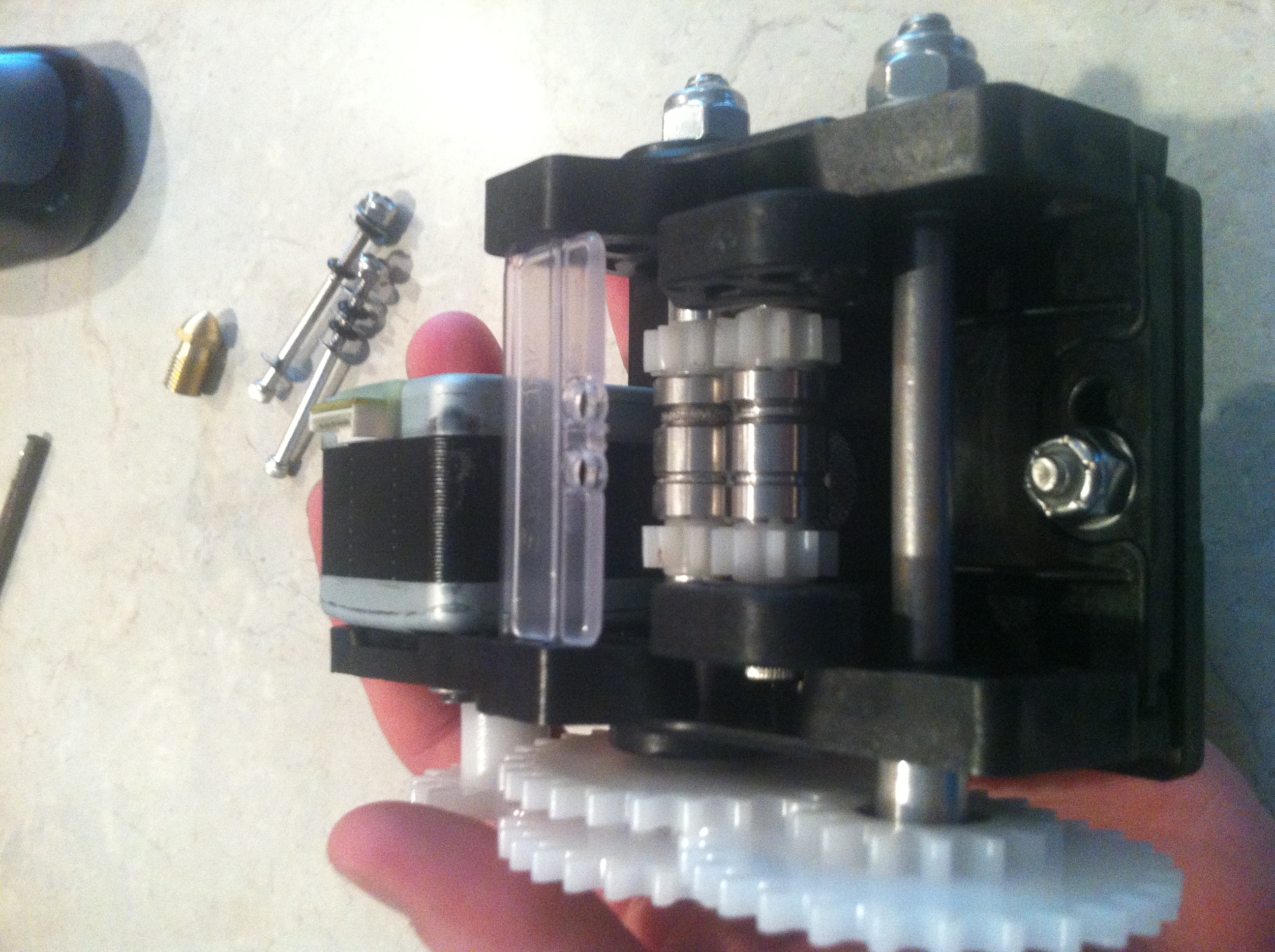 Also here are some pictures of the extruder for Mike. Sorry i forgot to take step by step pictures but those will prolly give you a pretty good idea of how to put it together. You might be able to see where the parts I'm missing go if you compare it to the old extruder.