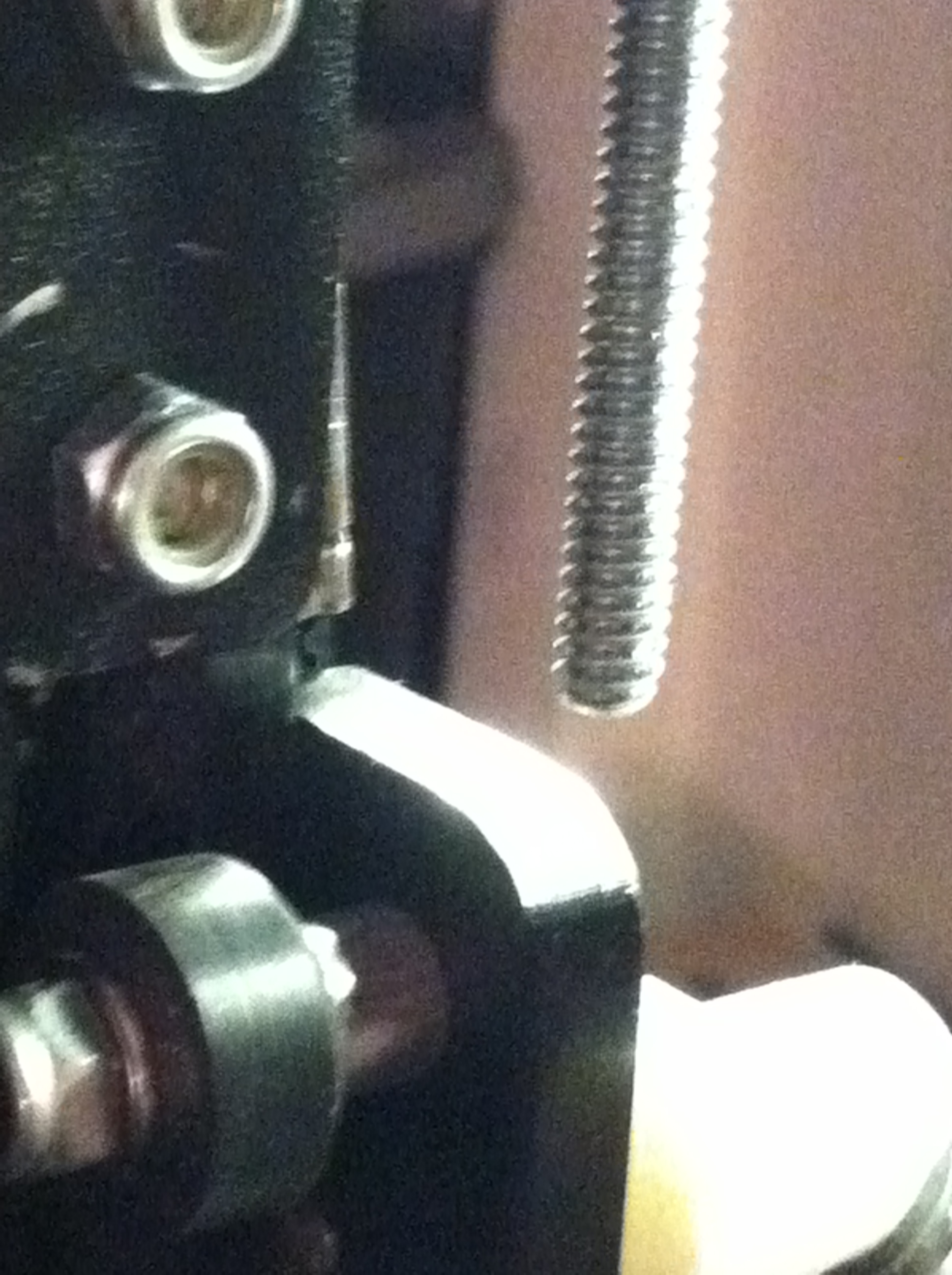 After that worked well i decided to apply the same idea to the linear carriages. I ran a all thread rod through the roof and soldered a positive wire to the threaded insert. Then I attached the negative wire under the phillips mounting screw. I had to file off the anodize around the contact area to close the connection. The wires are a little unsightly atm, but I'm gonna clean it up after it starts performing.