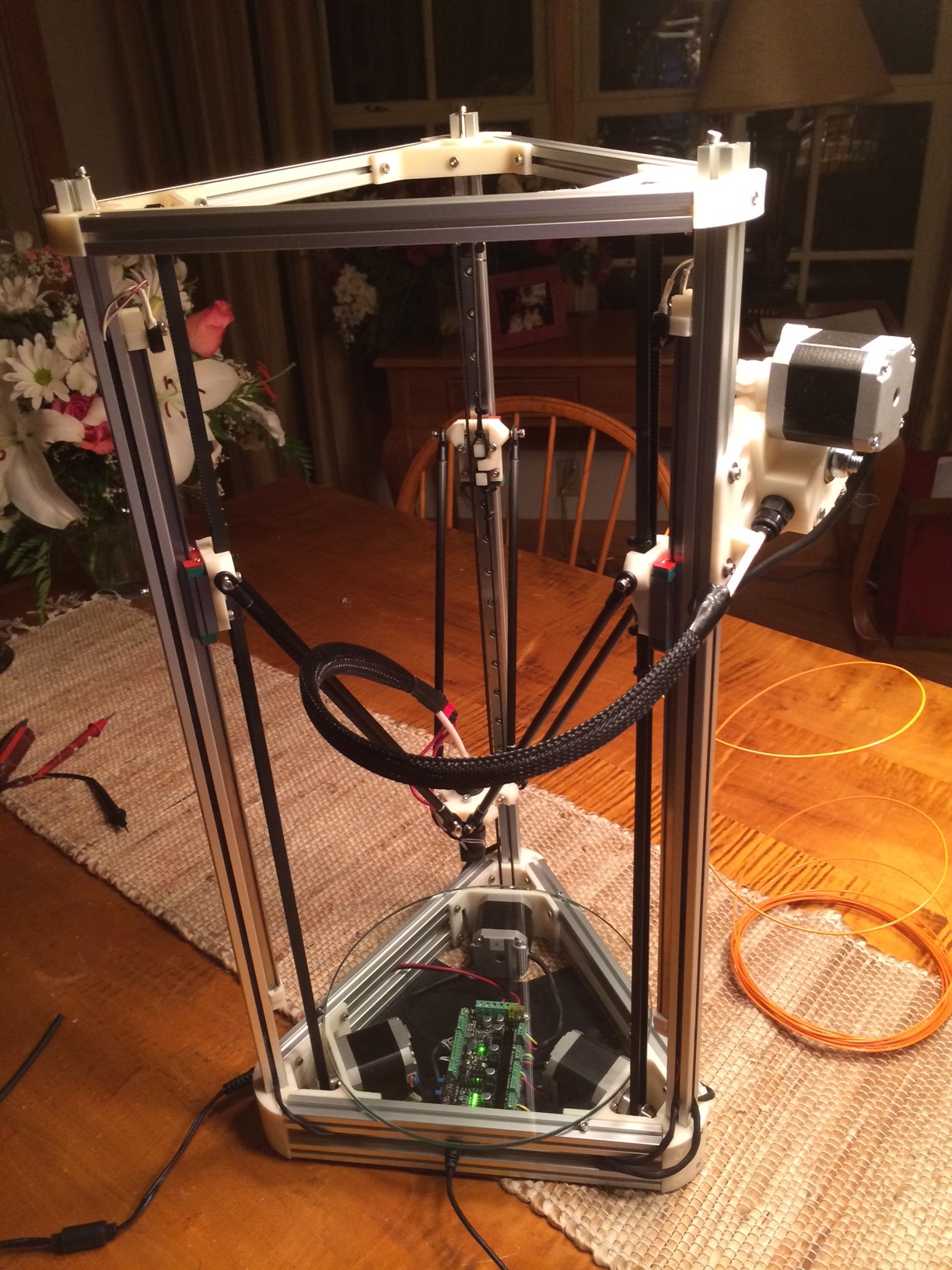 This new firmware reboots fine with the Kossel config. So now I can start to poet up the steppers...