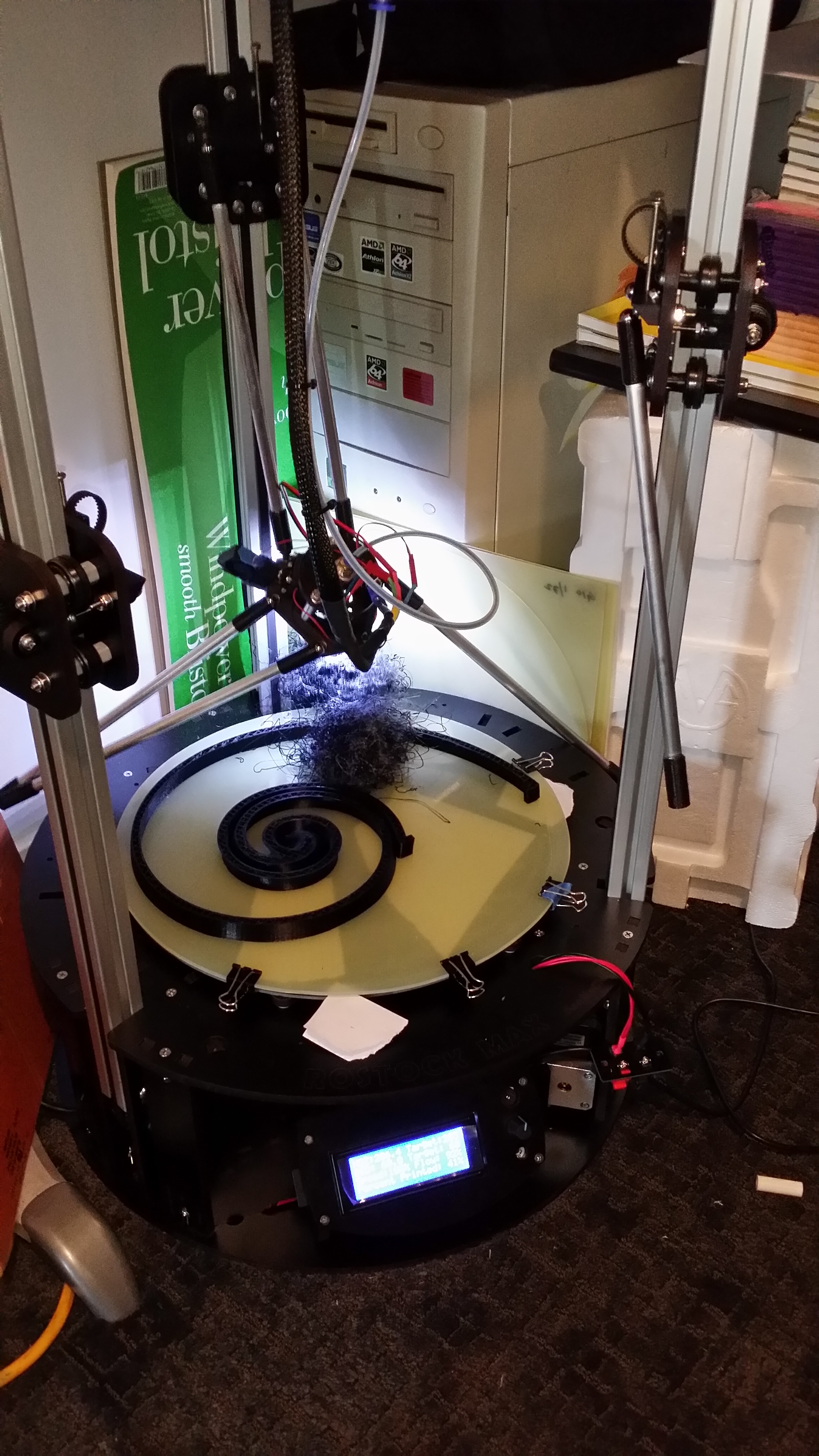 Tinyhead wrote:EDIT: I made a comment a few minutes ago that I could not get this to print as it was just too big. Gotta take that back; I'm still learning. If you have either of the farthest edges of the print directly across from a tower, you're done. BUT, if you take a moment, you can see that you can take advantage of the delta geometry and put those farthest points close to a tower instead. This is what I've now done and I can reach those distances fairly easily.