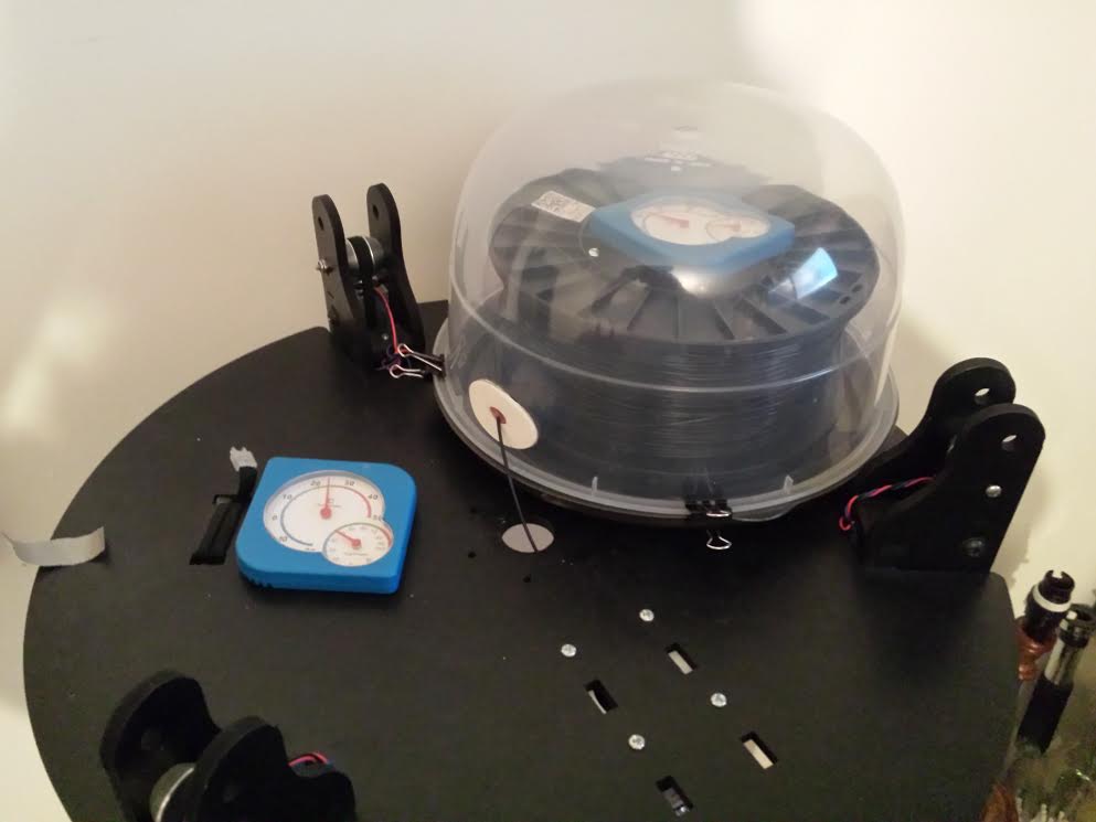 and the filament is delivered fine. I blu-tak the reel to the lazy suzan, but this is not really necessary as gravity works fine to keep it in place.