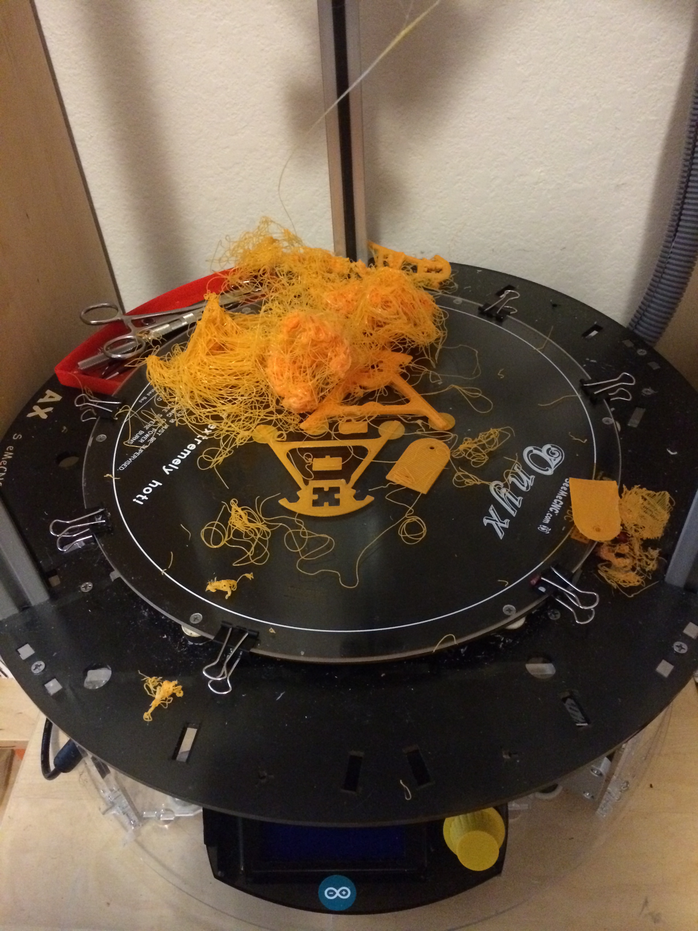 Eaglezsoar wrote:Orange spaghetti, that is one of my favorites!artexmg wrote:Today in the morning, I found this threads in my printer bed instead of what it was supposed to be my first parts of my Mini Kossel. Is it a sign from the heavens?