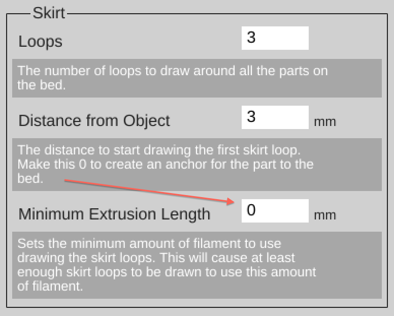 There is a setting in the mattercontrol where you can specify the minimym lentgth of the skirt.