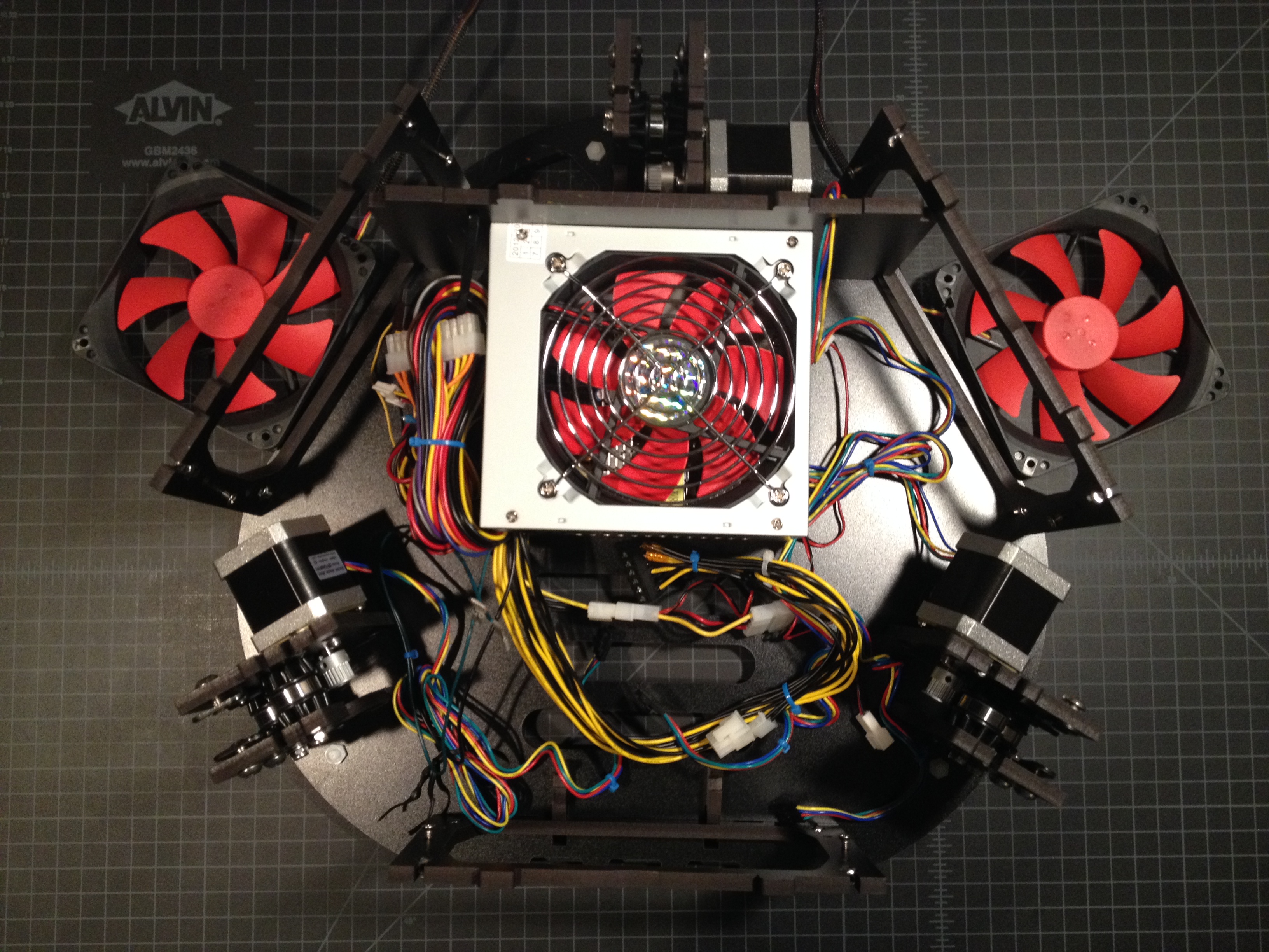 I forgot there was a gap in there... that black snowflake thing is in between, I totally forgot. I would use 2 fans though, one intake and one exhaust.. either that or have an exhaust instead of an intake if you're only going to do one and a grill on the other side. The reason I say that is because otherwise not much air will make it across and out the grill with the PSU trying to suck it all out...geneb wrote:Well the joke was to leave the power supply as-is and invert the WHOLE machine, thus balancing the whole printer upside down on the spool holder.