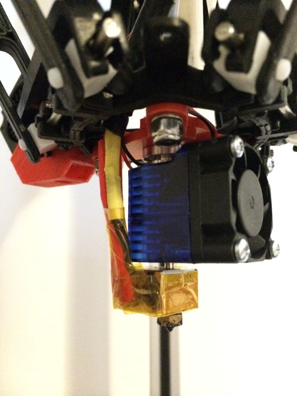 Printed a new mount for the E3D, I was trying for minimalist and function with the hotend mounted underneath the platform so that I can see whats happening and so that I have a small amount more airflow whilst still being able to print ABS, PC and Nylon, without having to add a layer fan. My layer fan is being used as extra cooling for the E3D so it can stay cool when running 300+ potentially printing PC. I also slowed the fans down by setting 240 instead of 255 in the firmware to reduce vibration.