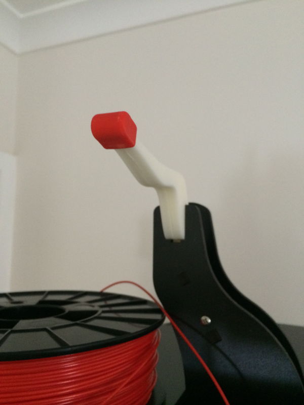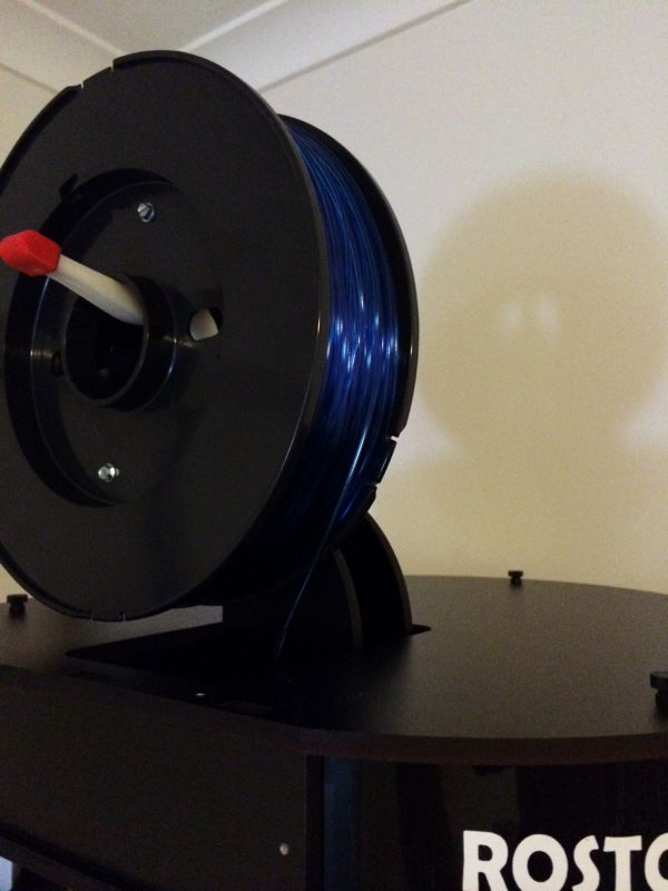 Designed and printed a new spool holder which is about 25mm higher than stock to allow me to use some of the left over stratasys spools (which are taller) I had without having to re-spool everything all over again.