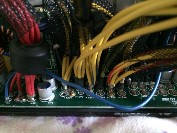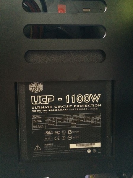 So today I spent a large part of the day re-wiring and installing the new power supply, a stunningly beautiful Coolermaster 1100W UCP (Ultimate Circuit Protection) unit that I had lying around.