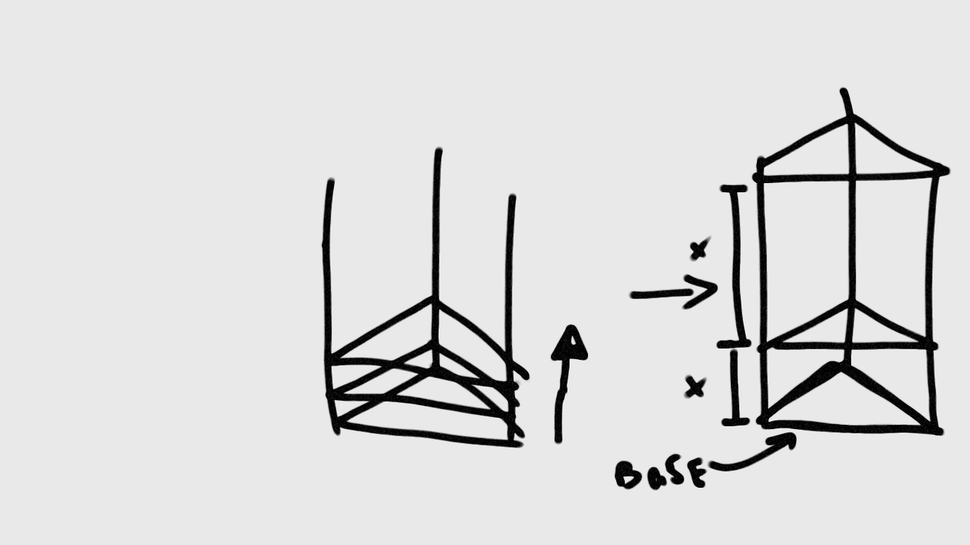so i used 1500mm 20x40mm vslot for my vertical linear rails, when i build my 60deg horizontal brackets i placed them all at the base on top of each other. i then tightened the horizontal extrusions so they were all the same lengths and slid them up the rails in place. i used the base as a reference point assuming the verticals were all perpendicular to the base. using gene's method of a cut measuring stick i spaced each triangle a set distance from the one below it and tightened. see attached pichow did you go about aligning such a large frame?