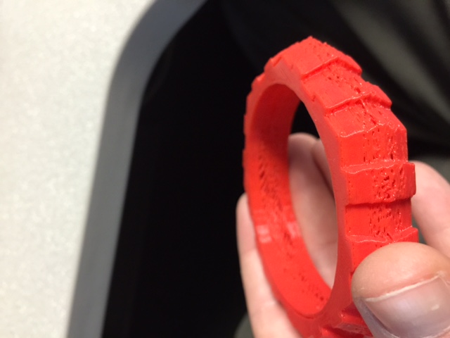 Prior to the bracelet above, I printed a Terminator head after clearing out ez struder, Bowden tube, hot end. Support said to go from 110 retraction speed to 60. After doing so, the Terminator head printed well. I then printed a larger terminator head and during the night MatterControl crashed on my Mac. This killed the Rostock print. I believe it caused another PLA jam. After clearing out the ez struder, Bowden tube and hotend again, I tried printing again. This time by SD card. The bracelet is the latest print that's showing major issues. During the bracelet print, I saw the temperature set to 190 drop to around 185c.