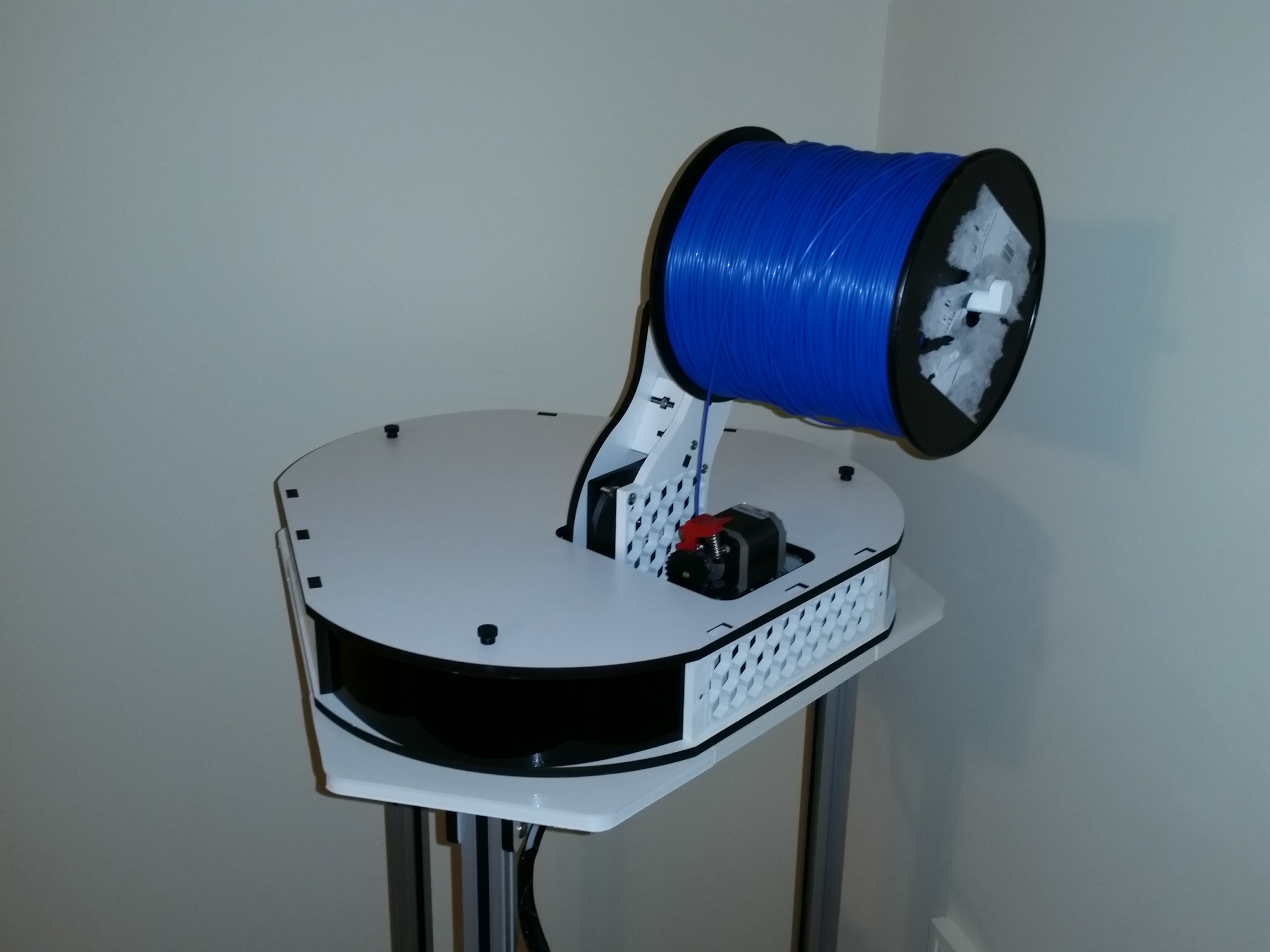 Clever idea! I had been idly wondering where a 2nd extruder motor could go with such a setup, without sacrificing the top melamine. It hadn't occurred to me to move the spool - I like the approach!