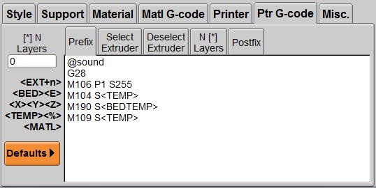 Here is where I placed it in KISSlicer to automatically turn on my PEEK fan which I have wired to the FAN 0 port: