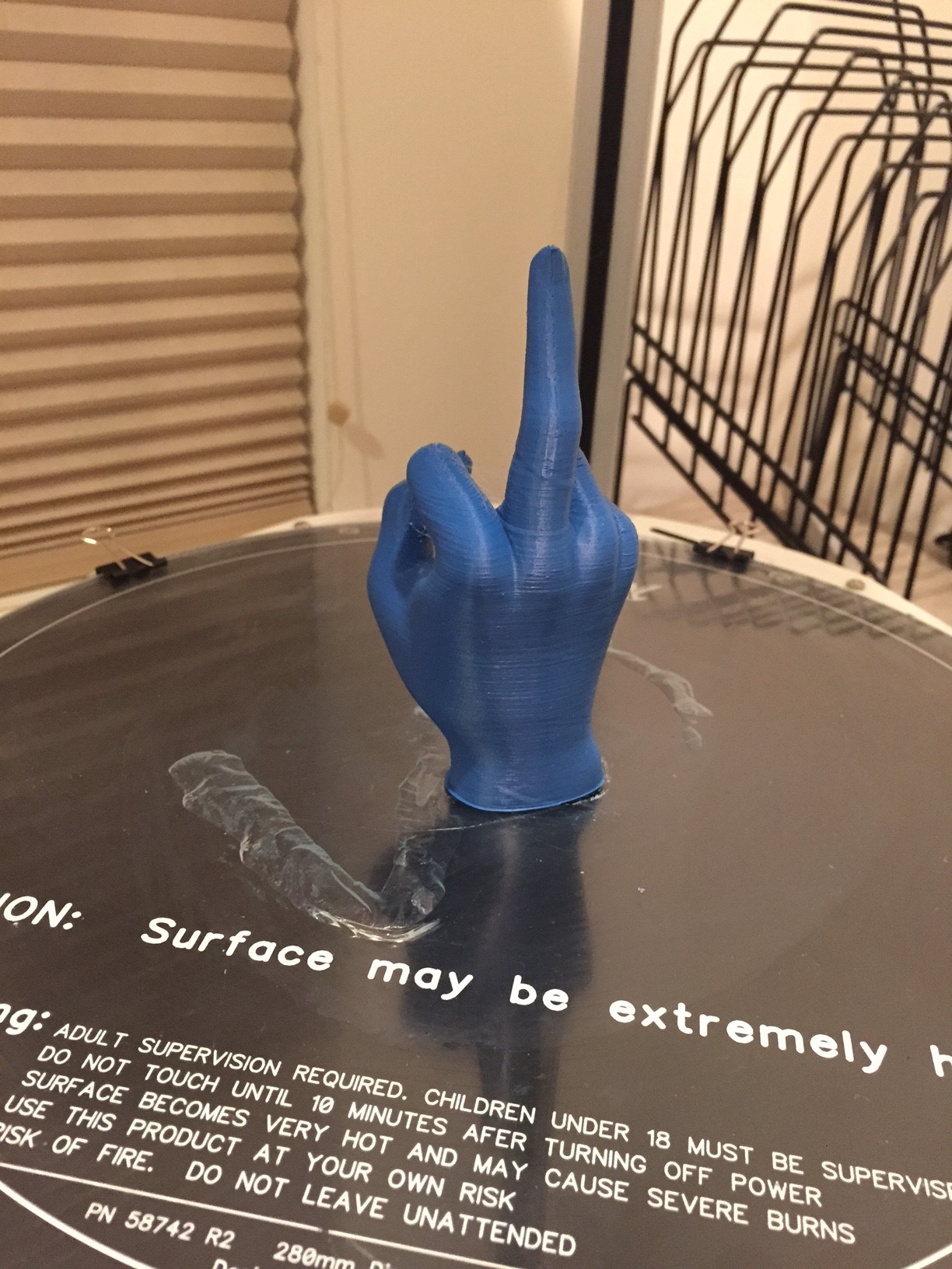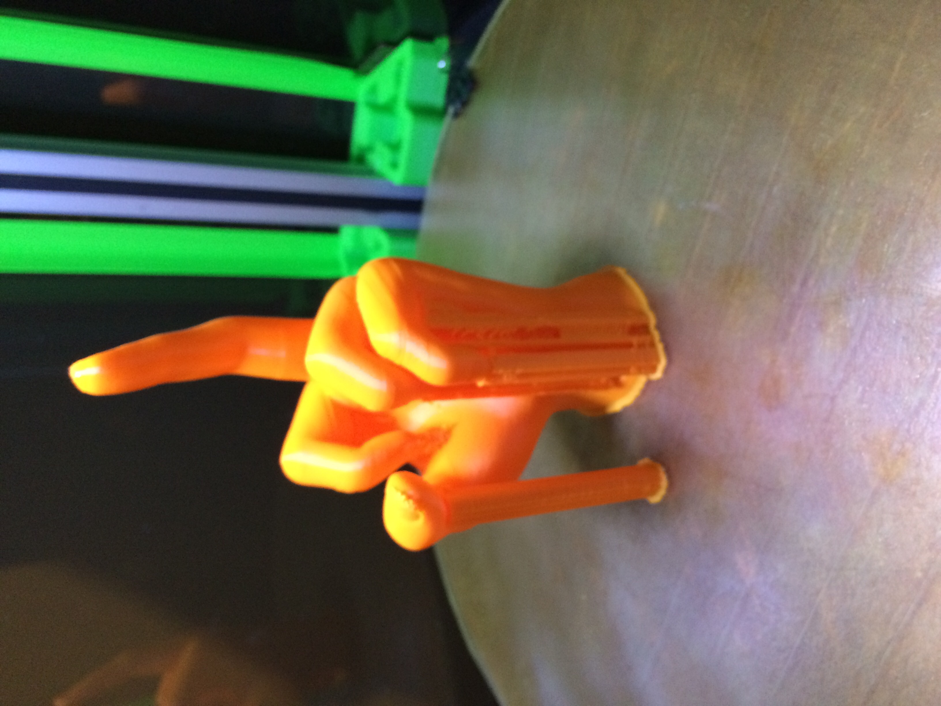 I did this in Cura 14.09 and obviously some settings were off. Even though I had 'support' turned on, it still was trying to print over thin air for the tips of the fingers. Ugh. Looks like Ver 15.02.1 puts more support in. So I might try again.
