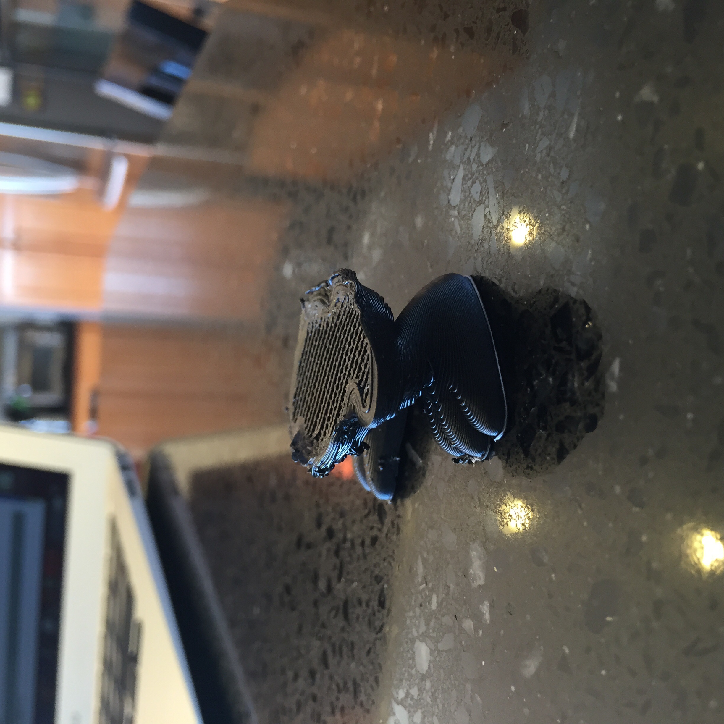Another image of the thermometer "holder." Of note you can see some dimples in the bracket which occurs when the print head is changing direction when printing fill. This happened using Cura Slicer with the wall being two layers.