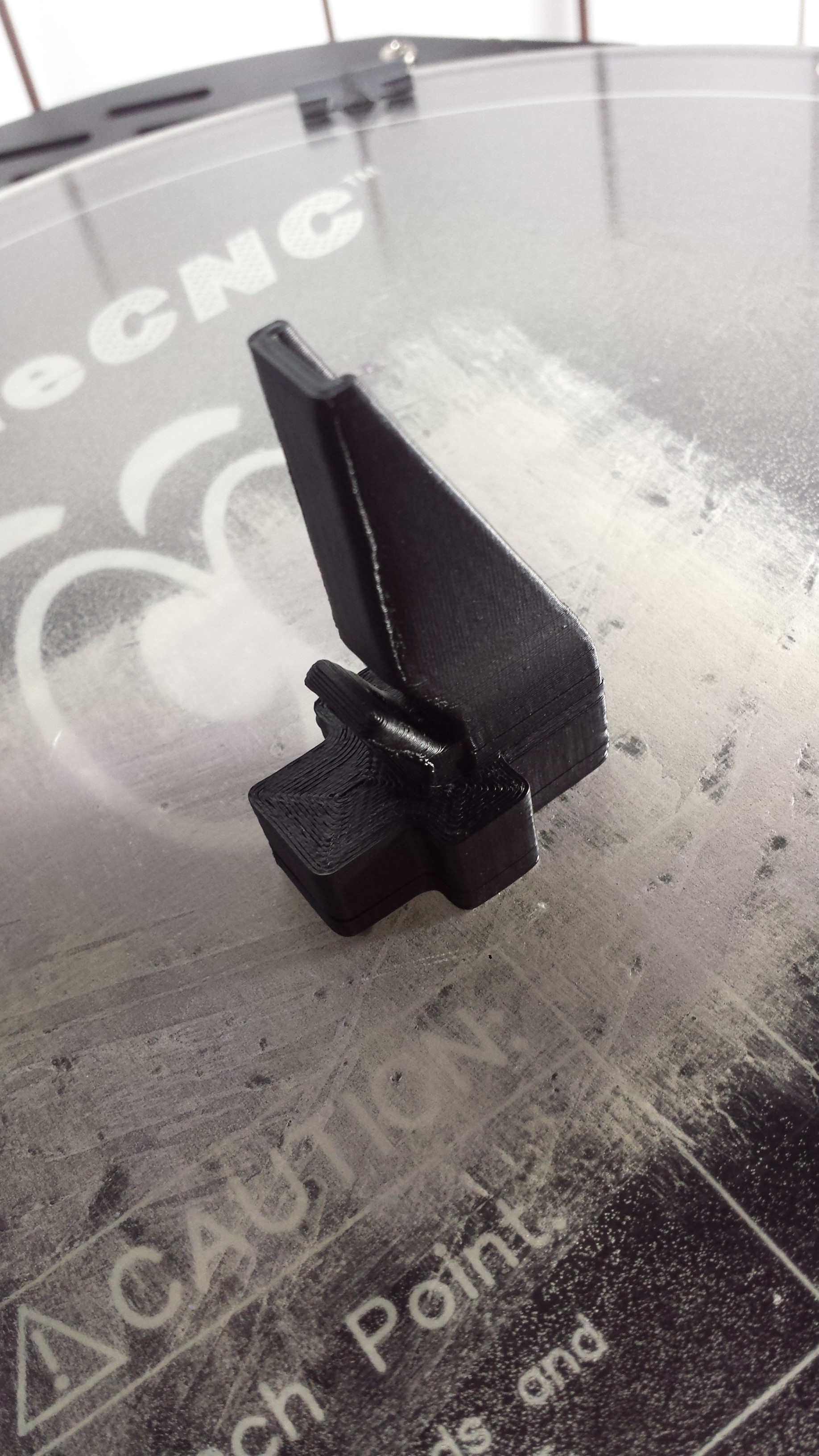 The next day i was back at the machine. with the extruder calibrated i was ready to print my first part. To my surprise everything went perfect and i got a very nice print. shroud 2 took two prints as the first one had some glass adhesion issues.