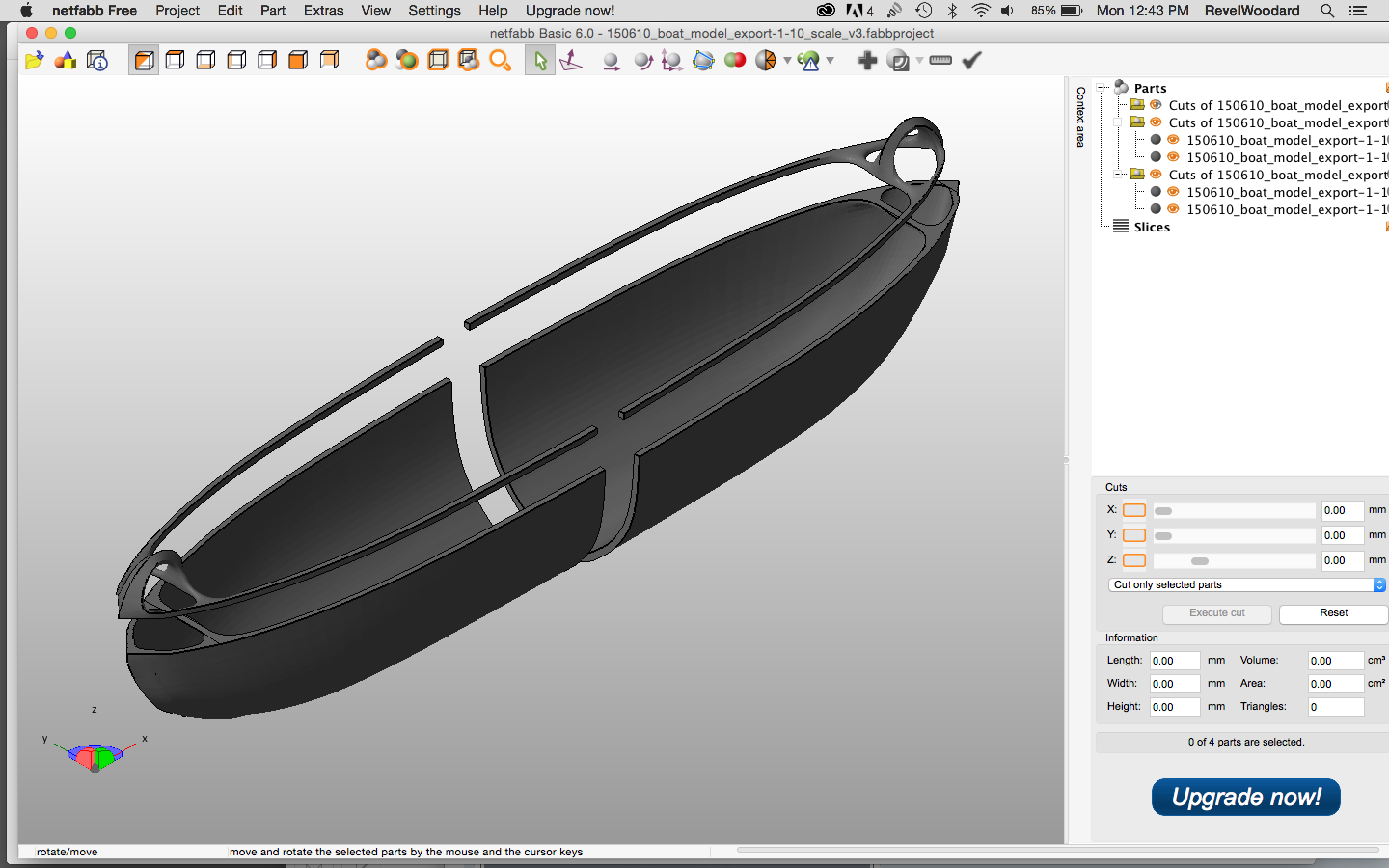 I've got this sliced up in Netfabb thanks to the guys over at Sketchucation and am printing the hull parts vertically and the top rims horizontally as mentioned. Right now my hull part print time is 11hr. I've started printing one as I write this. I would really appreciate any advice on the various parameters and settings I've listed below, or any other pertinent ones. One concern I have is that the infill seems jerky, and I feel the printer may rattle itself out of tolerance over time.