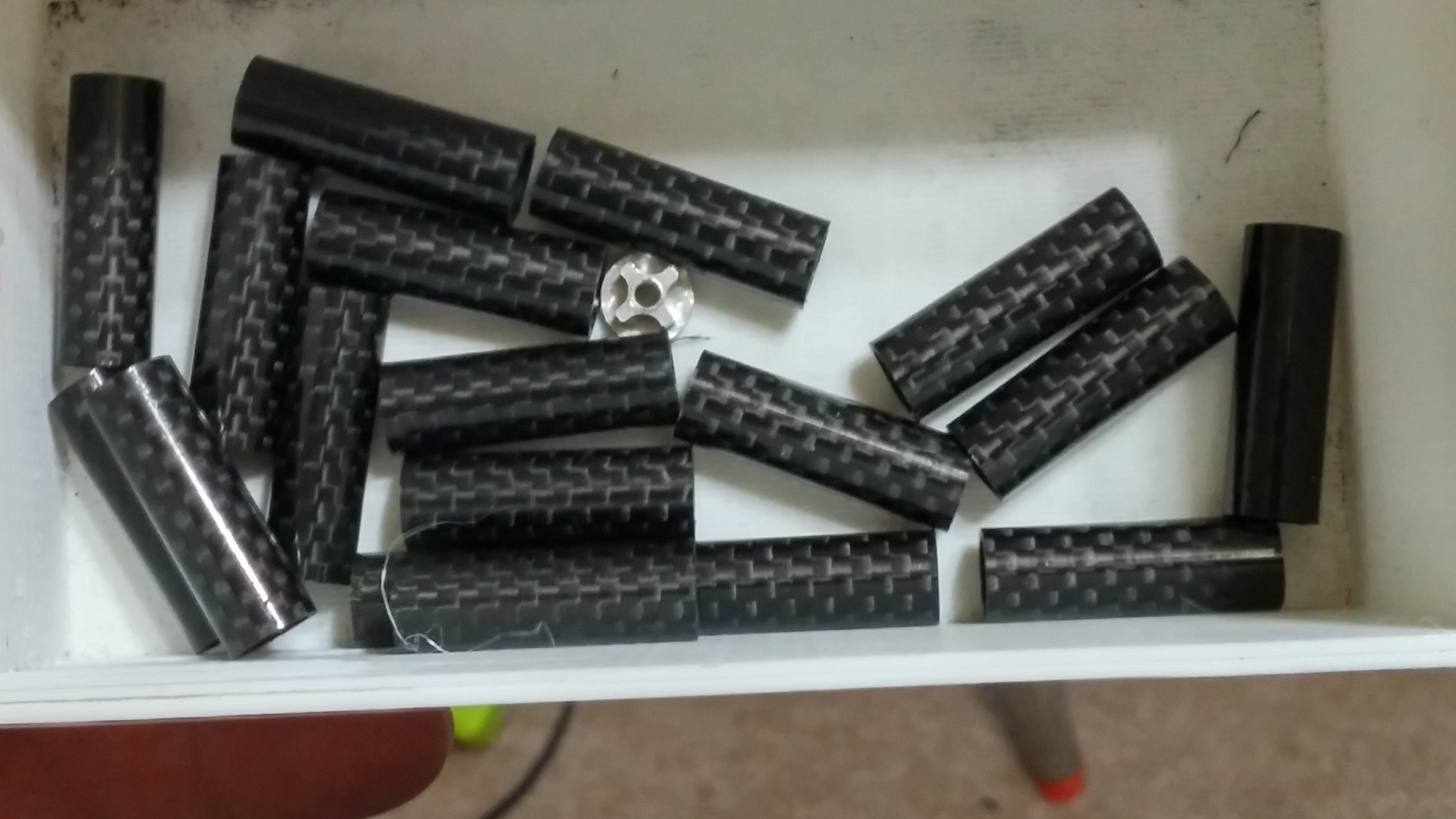 So the long awaited day has arrived for everyone. The Shapeoko is back to work at long last. The new milling bays are pretty much finished and the OKO is hard at work cutting carbon spacers. We had to dump all our wet anodizing dyes for the move but a wider range of colors is on the way and the new and improved anodize line will be up and running shortly also. I am working on finishing the Carve build that Inventables sent me for testing. The new mill will have a .8kw VFD 1HP spindle which should speed things up a bit. Also working now to get the big mill enclosed and up and running. The OKO will be pulling all the weight for a bit longer but we will soon have all three mills up and running to get caught up. I have a few out of town jobs in the books this month but then it is vacation time again for a few months and I will be working hard in ALL my free time to get caught up and have mounts out for everyone. Sorry the move had such bad timing with the mount production. Packing everything up and moving across the country is NOT my idea of fun, but I will say we love the new place and are working hard to get everything back up and running.