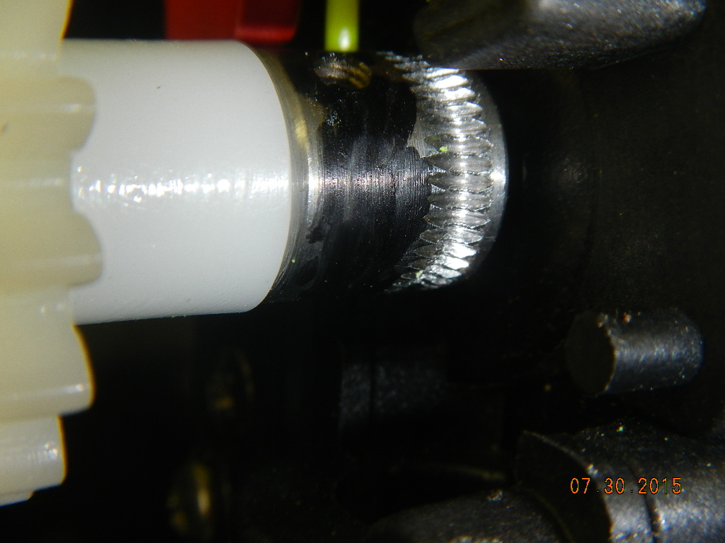I have noticed that the hobbed gear runs only about 3 degrees C lower than the rear or front of the motor. Take a black sharpie and coat the shaft of hobbed gear the inferred thermo reads better. My solution for the cracked cover, trash it now we can see the filament feed.