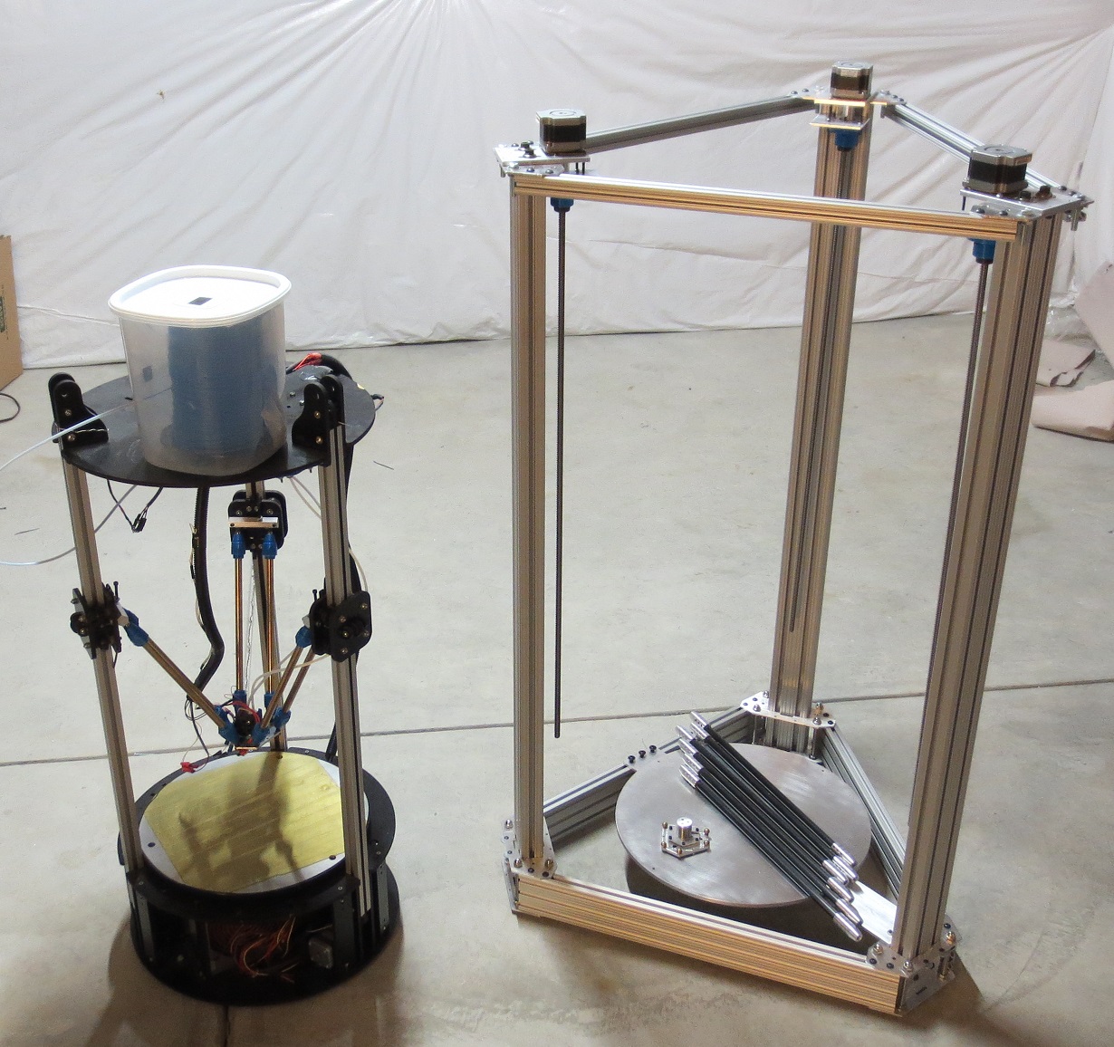 This is what the printer looks like half-assembled next to my Rostock Max V1.