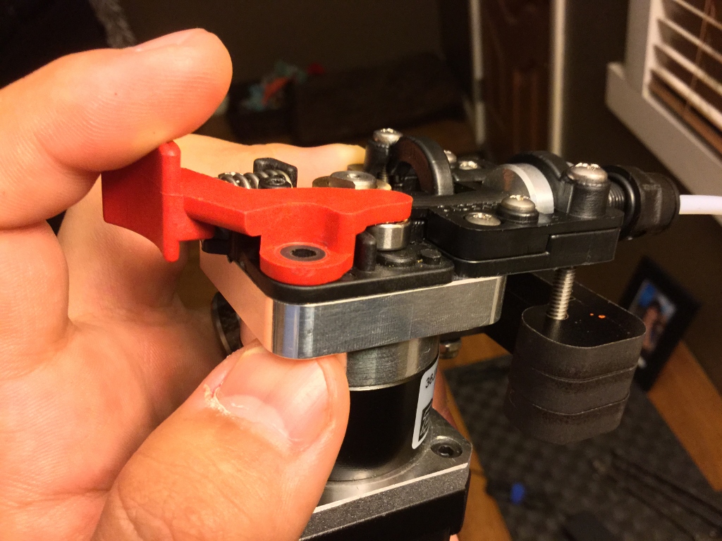 I've been researching, designing, testing, "repeat" a new gear motor driven extruder and in the process have studied the ezStruder everywhichway. I get reports (and many posts here) of ezStruder skipping issues and filament starving. With every thing else in order I can say that the week link in the ezStruder is the spring. Simply doing Brian's M4x10 spring shim enhancement is the best single thing you can do to the ezStruder.