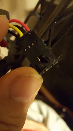 I decided to use a Molex connector from some older spare computer parts. I was working on the last thermistor lead and while stripping the wire, pulled the entire lead out of the thermistor. Luckily I have an extra thermistor I bought on eBay a few weeks ago. I was able to remove the old thermistor and add the new one easily. I tested the hot end resistors and thermistor. It gave me roughly the correct resistance values. I put the hot end back in the printer and was able to heat the hot end to 100 C. Now on to the rest of the tuning later tonight.