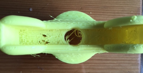 On the top view you can also see that the top solid layers inside the part have holes in them and are not at all good. On the part with the olive oil, they are solid. I still do have a bit of stringing, but these appear to be more solid strings like the extruder did not stop extruding, not like the classical spider web type of stringing which was abundant before the olive oil.