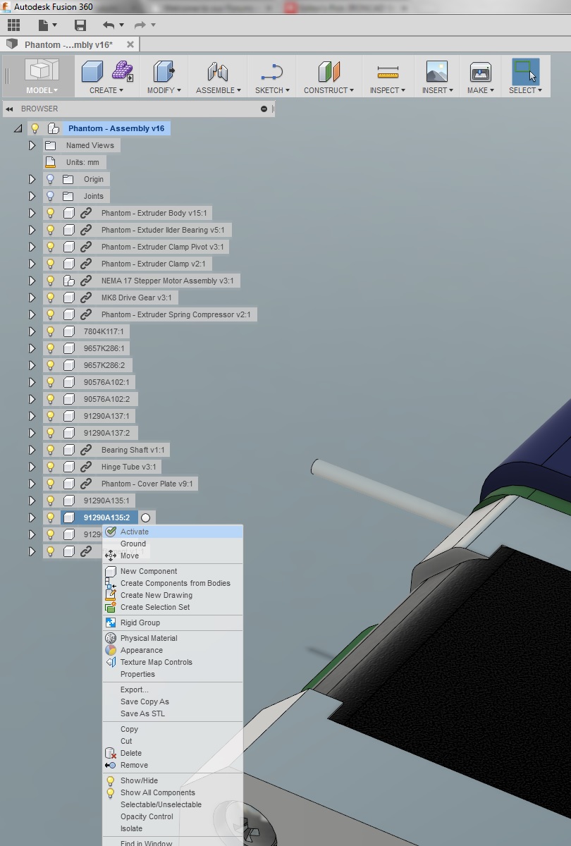Re: Direct drive bowden extruder using Autodesk Fusion 360