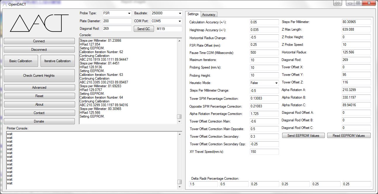 Yes, you are most likely having a similar issue. So if you would like to generate a height map then we could try and diagnose the issue.SirLinhart wrote:Our issue sounds similar to mhackney's. Regardless of calibration method we end up with 2 dips in 2 spots in the bed. Belts are evenly tight, skates are well locked in, rubber bands on the arms. We have an adjustable limit switch Z-probe that we set to match the position of the hotend to about .3mm. Have repositioned the bed multiple times, verified level by using a Starrett level. Multiple iterations though opendact from 2.0 to current on all modes. This has consumed a nauseating number of hours. I did pick up a set of tricklaser arms/effector/skates for a mex metal build, I can try them to see if it makes a difference, that will be our next step. If that fails then I'm not sure what to do besides an entire rebuild, and I'm not sure if Caspers frame can handle it.