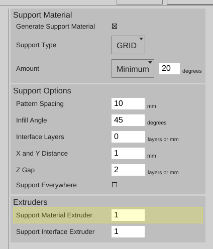 I'm trying to print something with grid support and everything sounds and looks okay for the actual object but when it prints the support material, it seems to drag on the top layer. Most noticeable is the sound but it looks like it's dragging slightly. Is there a setting that causes this? The support is printed at the same speed as the infill so I know it's not a speed issue.