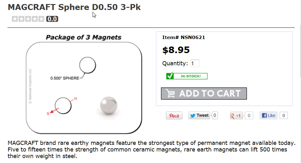 It's interesting that they're cheaper there than here: http://www.rare-earth-magnets.com/c-12- ... gnets.aspx