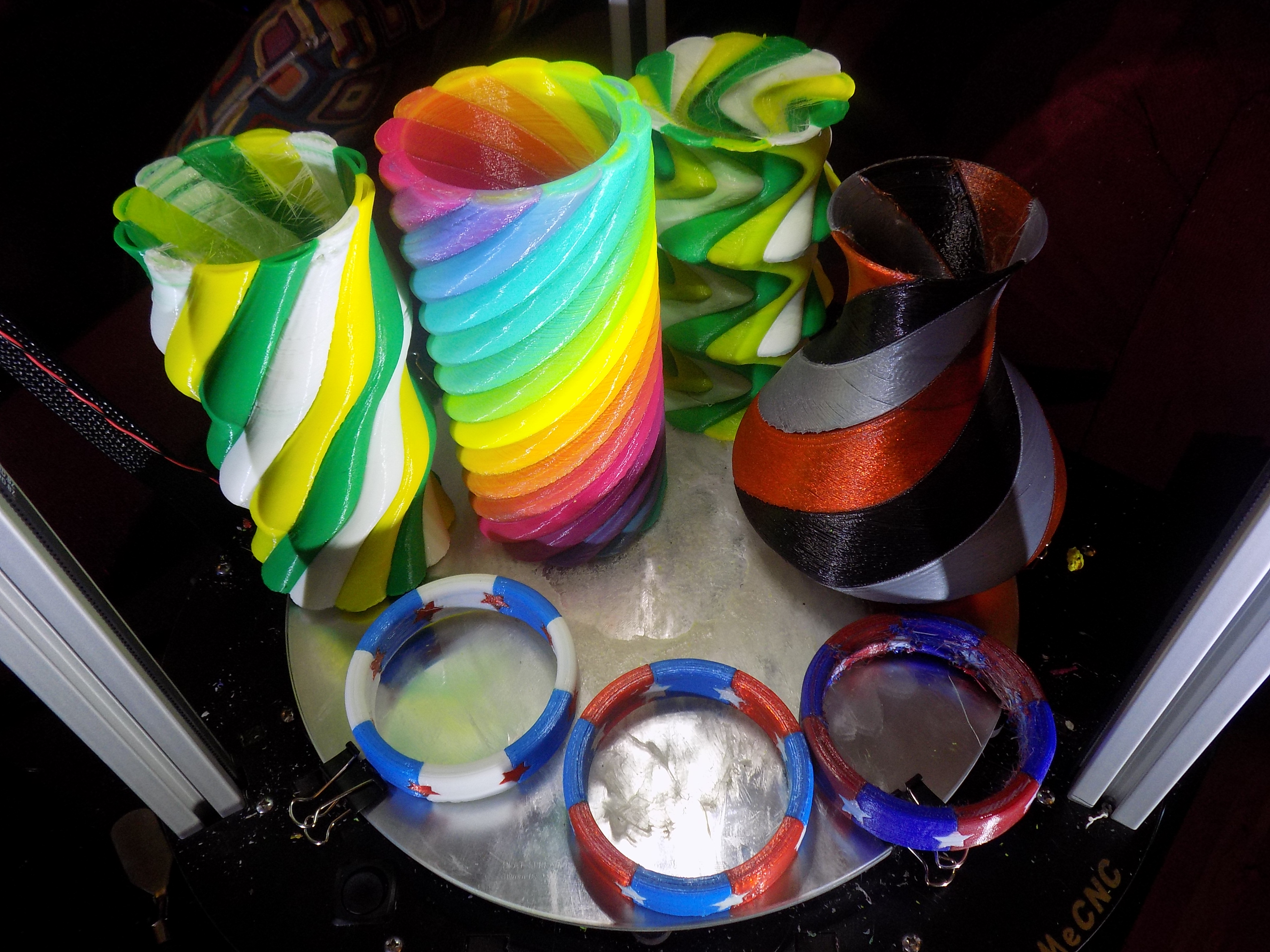 You really have to add white and black to the mix for FULL color prints, and IMO any 3D printer isn't complete until it has the ability to extrude dedicated support material like HIPS or PVA.