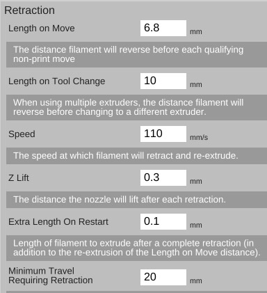 Thanks for the reply. Still learning where everything is. Tried playing with the numbers in this window, only saw retract option and no prime. Andy idea on presets or should I look in another menu?