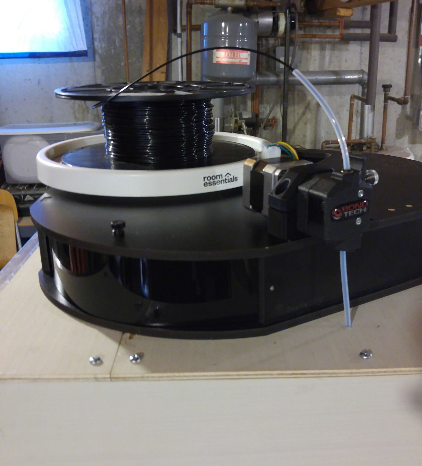 given the summer humidity here on the Maine coast I am thinking of a dollar store plastic cake box to cover the spool and lazy suzan to keep what ever filament is mounted dry.... I have some .50BMG ammo cans that I think will work for the other opened filament storage with the silica gel packets.