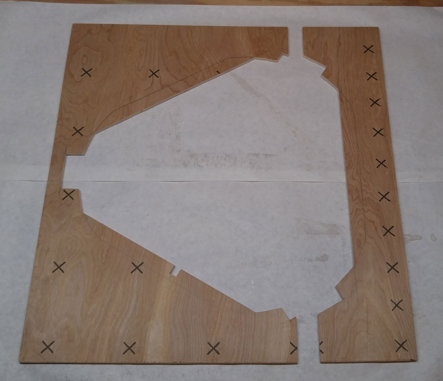 Traced printer form onto the wood and cut about 1" inside that, with cutouts for the 1010 aluminum rails.