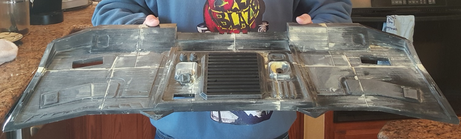 Hello everyone. I've been away for a while working with my brother on his latest project. He is building a cockpit from the cargo ship in the game Elite Dangerous. We have hooked into the log files of the game in order to know game events such as when we are hit, shields, location, etc. He asked me to recreate the cockpit model (with some artistic license) and print it. It's 33"x11" and 2" thick. This console will be filled with wiring for lighting that responds to game events. I After this is completed, I will be printing the lower hand console portions. My brother has put together several touchscreen TFTs with some pic programming and already coded out the touch displays that send keyboard commands to the game. So, instead of pressing a key to lower the landing gear, he uses the touchscreen which sends the command on his behalf. We will be replicating some of the graphics in the game. He bought several large screen plasmas and a cockpit chair with throttles and foot pedals. It's a massive project! He lives up in Flagstaff so I have to ship this to him, but here is the cockpit work in progress so far. I've already burned through 2 1/2 spools of ABS filament and another 1 to go.