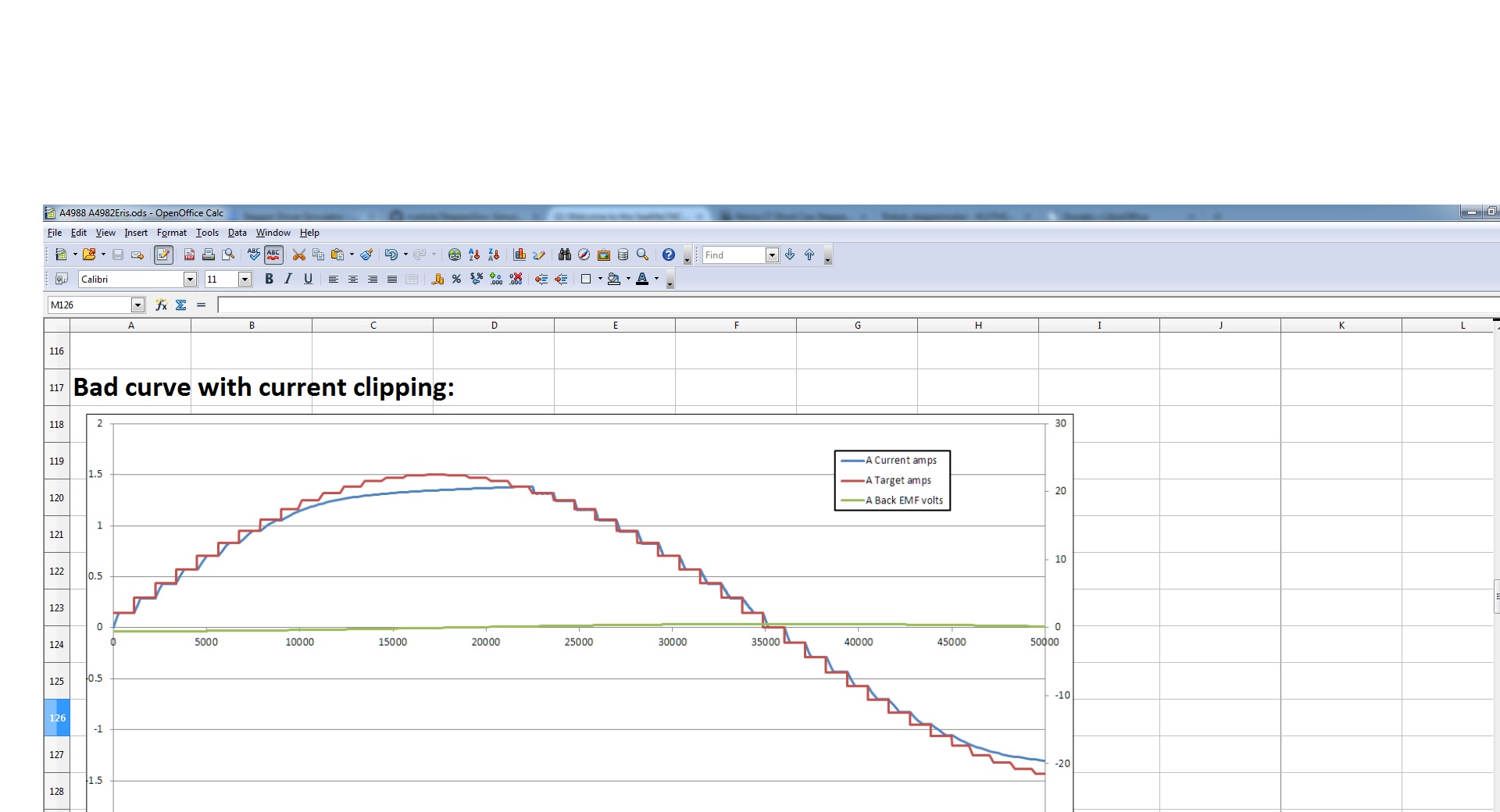 That's why this thing is so noisy, the stepper driver cannot control the current in a high inductance coil that self limits the current.